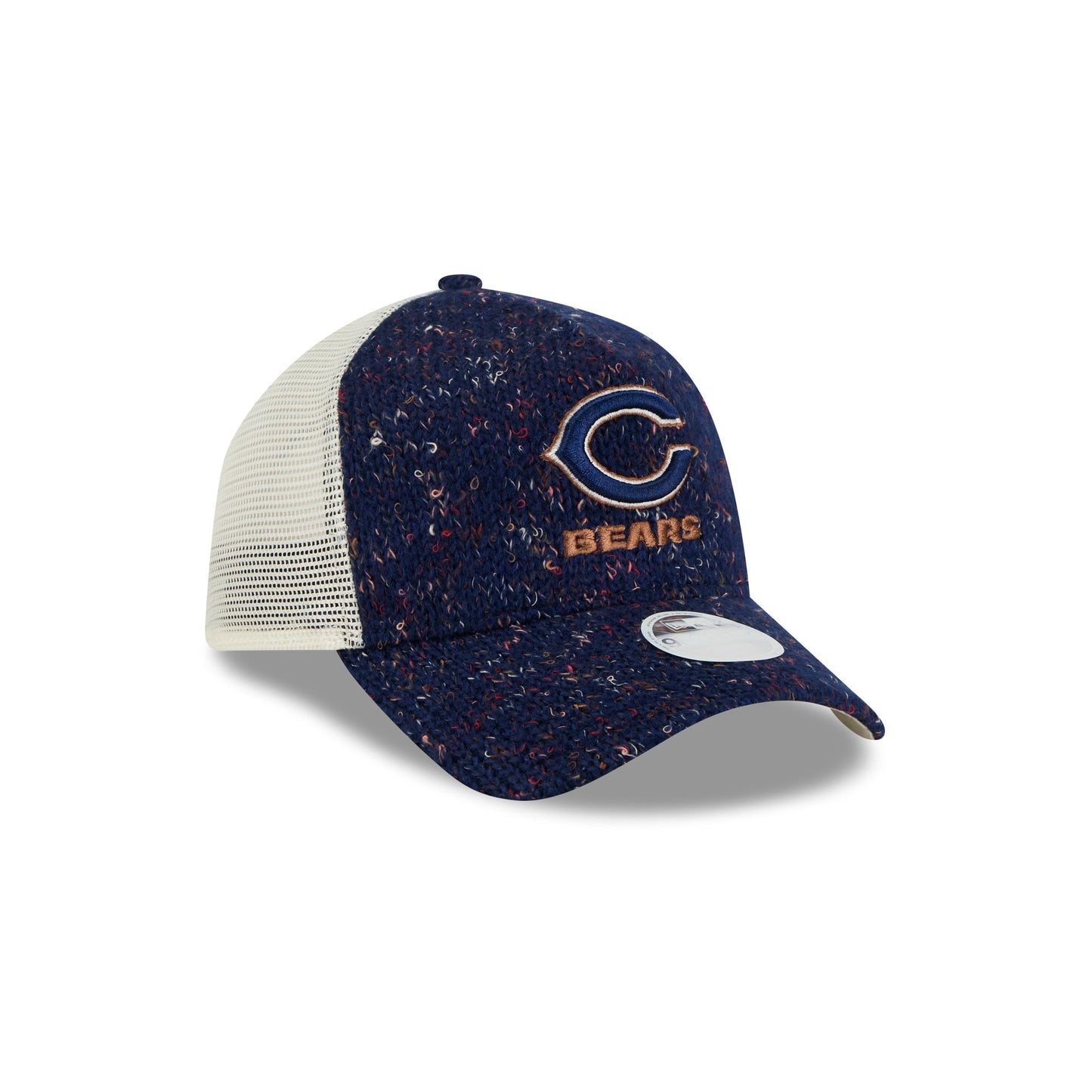 The Chicago Bears Knit Women's 9FORTY A-Frame Trucker features an embroidered Bears logo at the front knit panels. Additional details include a snapback closure at a mesh rear and white undervisor.