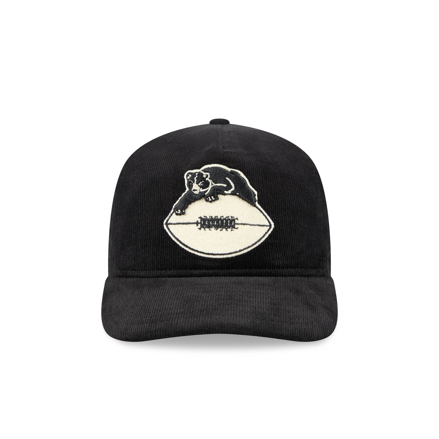 The Chicago Bears Nostalgic Black Corduroy 19TWENTY Adjustable Cap features an embroidered Bears Historic logo at the front panel with a snapback closure at the rear and a gray undervisor.