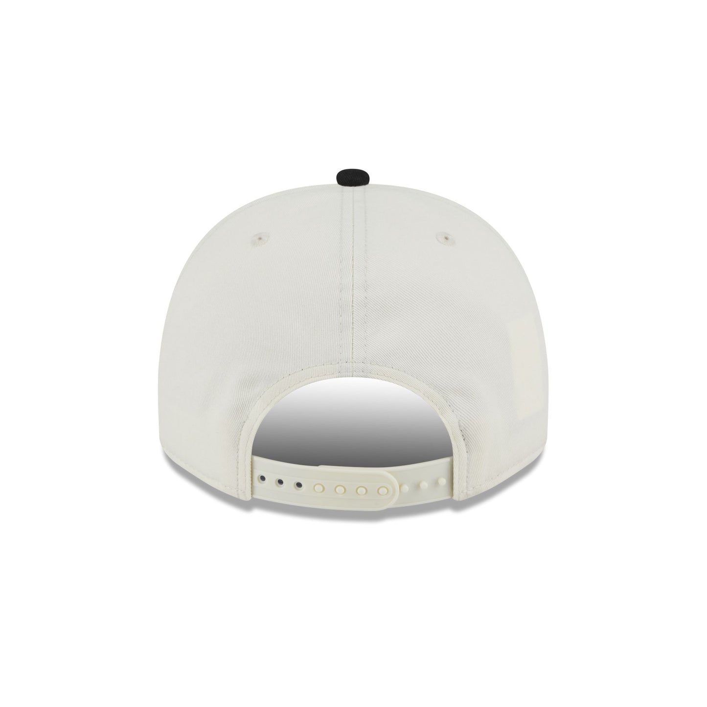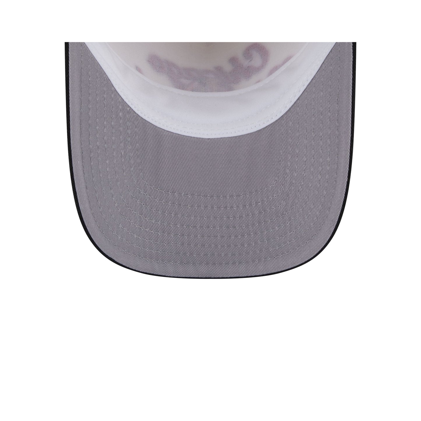 The Chicago Blackhawks Chainstitch 9FIFTY A-Frame Snapback features a chainstitch Blackhawks logo and script wordmark at the front panels with a snapback closure at the rear and a gray undervisor.