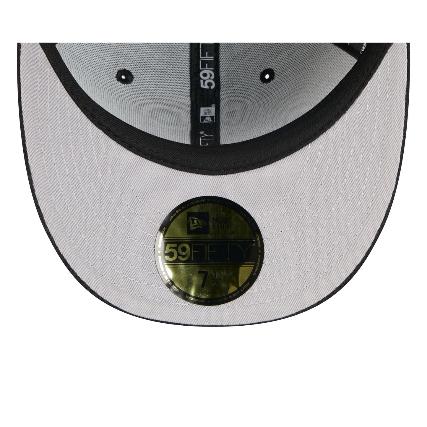 The Chicago Blackhawks Chenille Pop 59FIFTY Fitted Cap features an embroidered Blackhawks chenille logo at the front panels with a soft striped fabric throughout the cap. Additional details include a matching NHL Shield logo at the rear and a gray undervisor. This cap comes with a pre-curved visor.