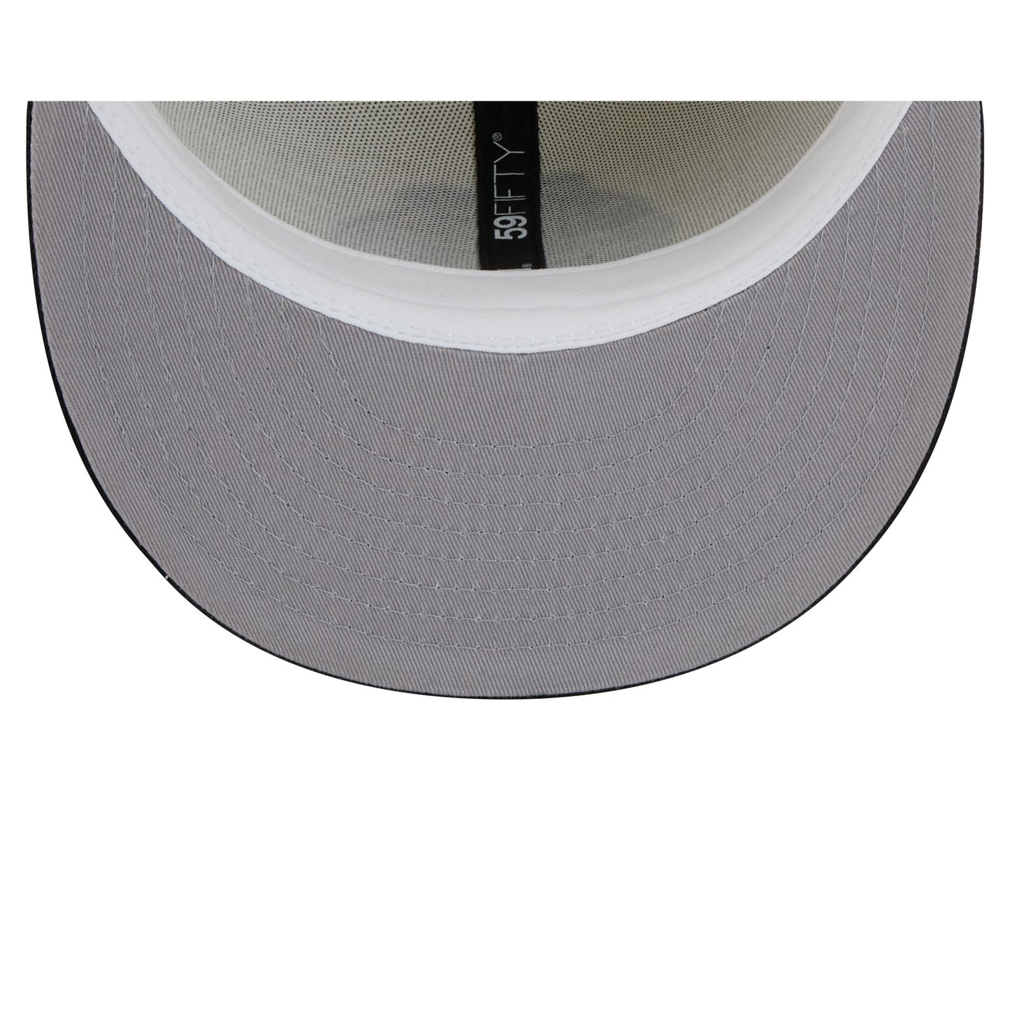 The Chicago Blackhawks Chrome White 59FIFTY Fitted Cap features an embroidered Blackhawks logo at the front panels with a matching NHL Shield at the rear and a gray undervisor.
