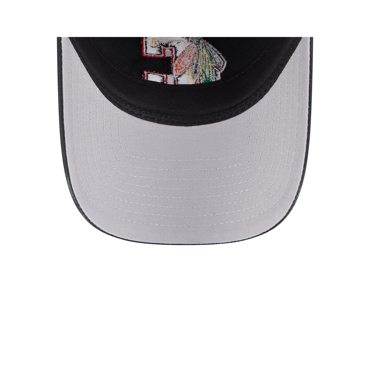 The Chicago Blackhawks Deceptor 9TWENTY Adjustable Cap features an embroidered Blackhawks deceptive logo at the front panels with a team logo at the right-wear side. Additional details include a logo at the rear and a gray undervisor.