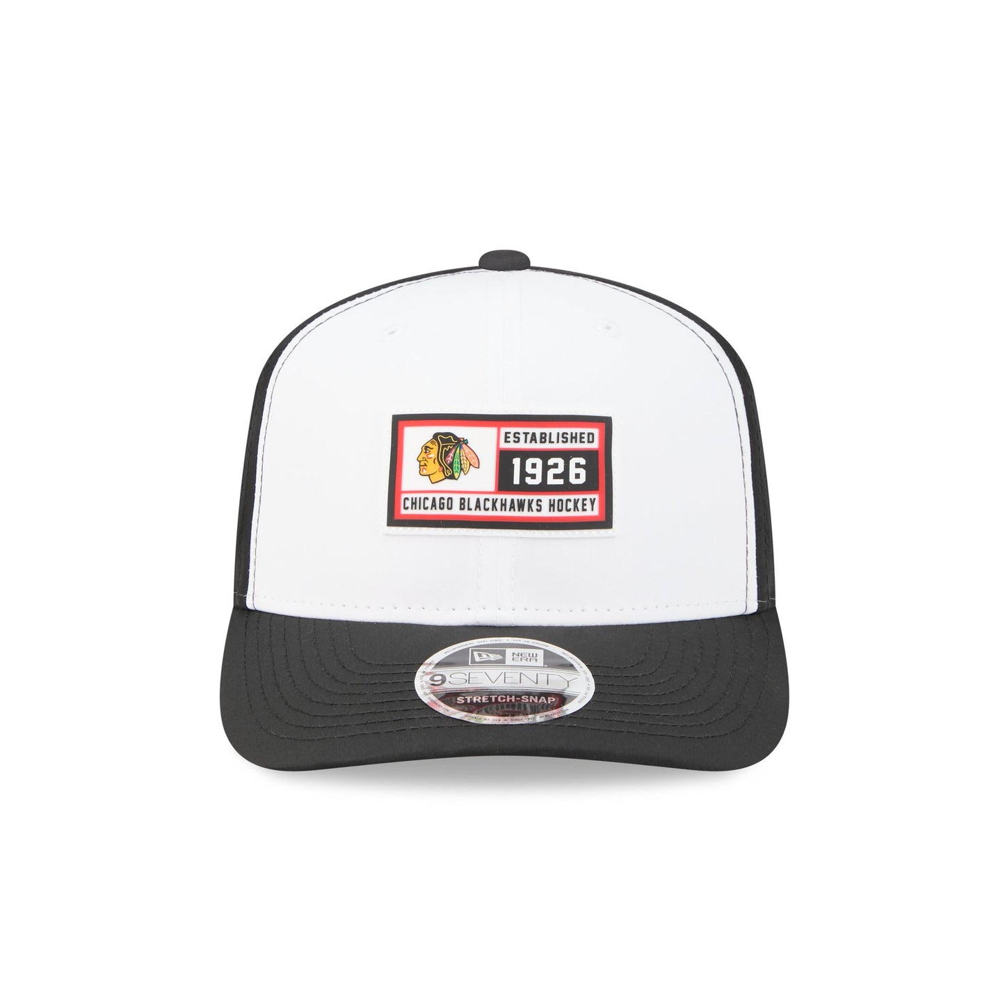 The Chicago Blackhawks Est. Patch 9SEVENTY Stretch-Snap features a woven silicone Blackhawks establishment patch at the front panels with a slant-snap closure at a performance mesh rear and a gray undervisor.