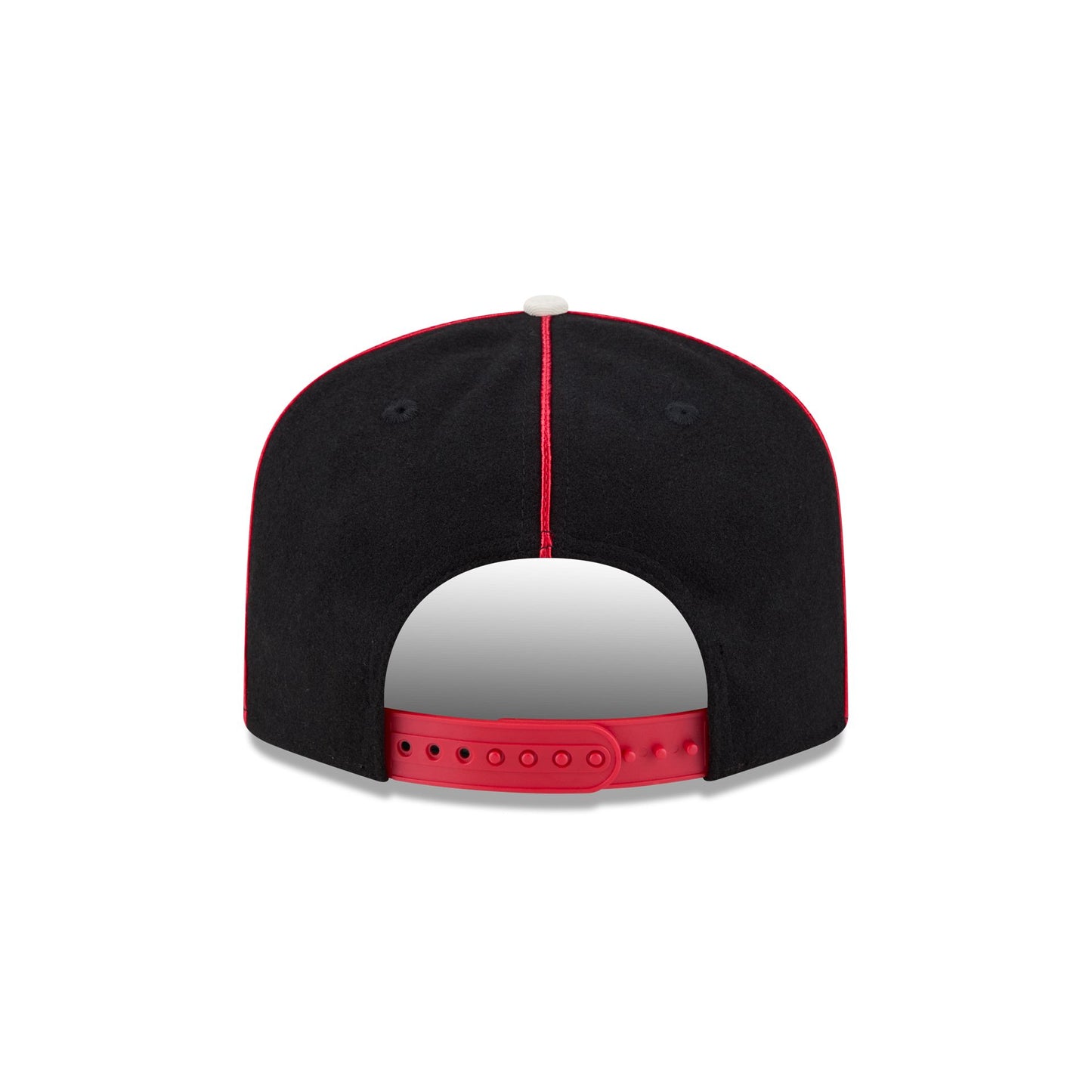 The Chicago Blackhawks Felt Logo 19TWENTY Adjustable Cap features an embroidered Blackhawks felt logo at the front felt panels with the NHL Shield logo at the right-wear side. Additional details include an adjustable snapback closure at the rear and a green undervisor.