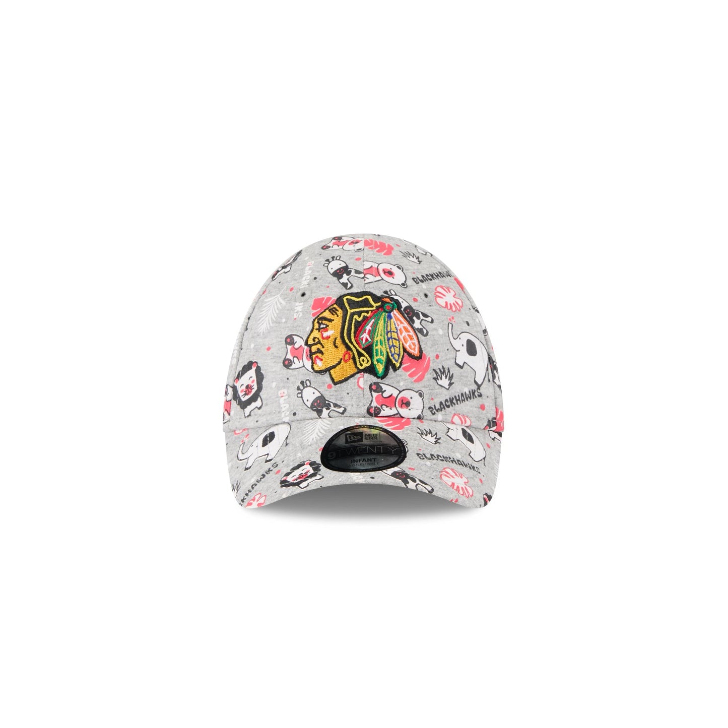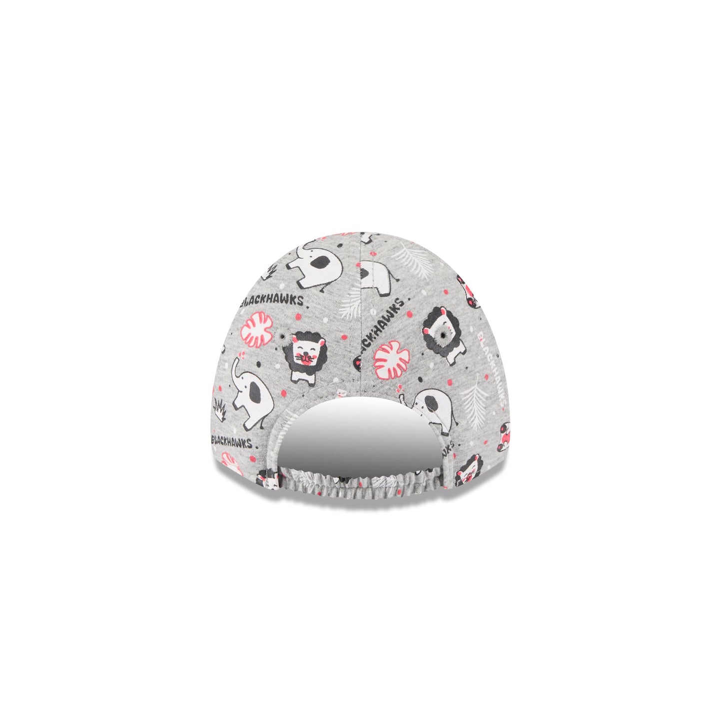 The Chicago Blackhawks Kids Animal 9TWENTY Adjustable Cap features an embroidered Blackhawks logo at the front panels with screen-printed animals throughout and a soft stretch cord at the rear.