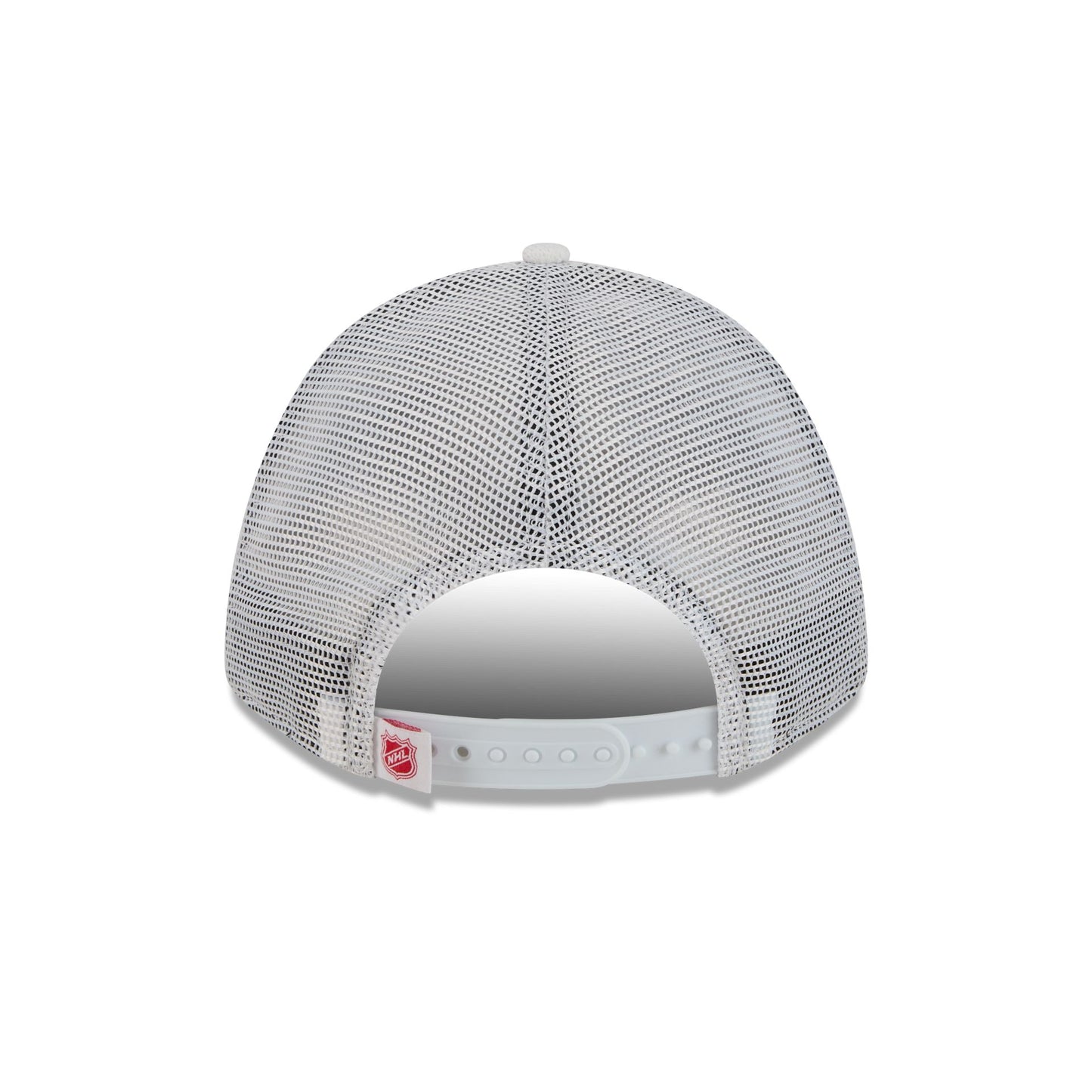 The Chicago Blackhawks Sock 9FORTY M-Crown A-Frame Trucker features an embroidered Blackhawks logo at the front panels against a split sock fabrication. Additional details include a snapback closure at a mesh rear.
