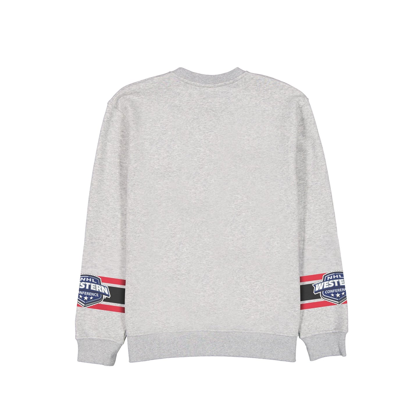 The Chicago Blackhawks Sport Classics Vintage Gray Oversized Crewneck features a screen-printed Blackhawks wordmark and graphic at the front with woven team jocktag at the bottom hem. Additional details include a Western Conference logo with team color stripes at the sleeves.