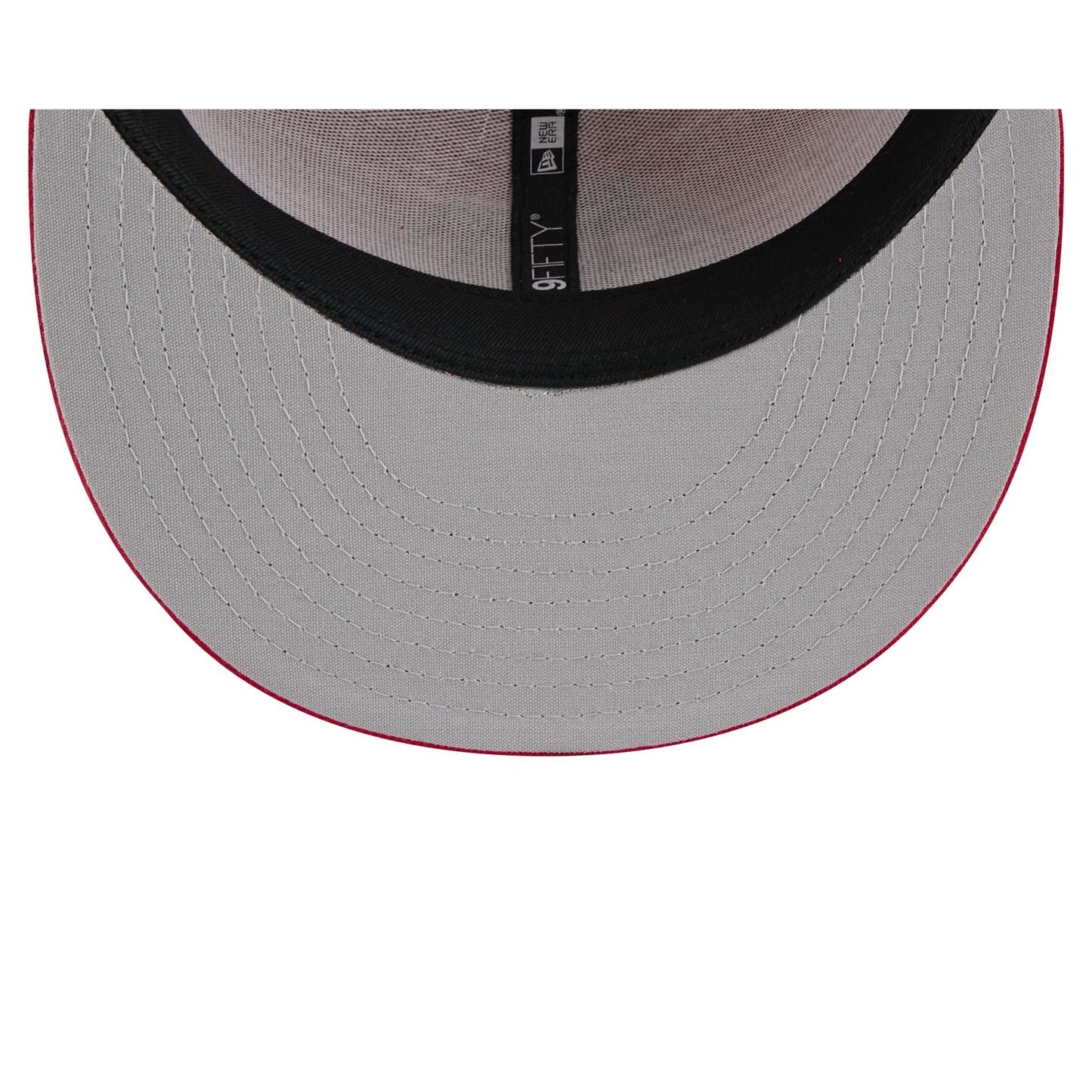 The Chicago Blackhawks Team Tag 9FIFTY Trucker features an embroidered Blackhawks logo at the front panels with a team tag on an snapback closure at a mesh rear and a gray undervisor.