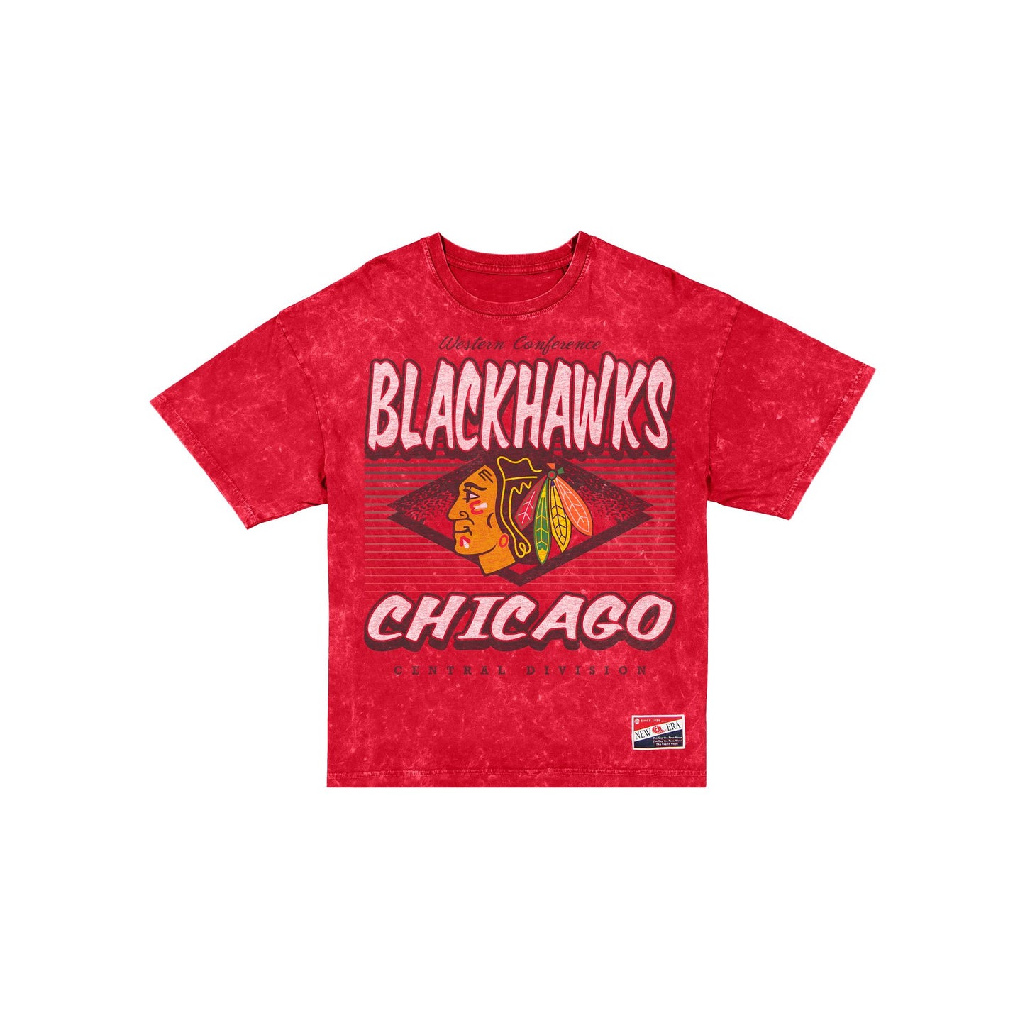 The Chicago Blackhawks Throwback Classic Women's T-Shirt features a screen-printed Blackhawks graphic at the front.