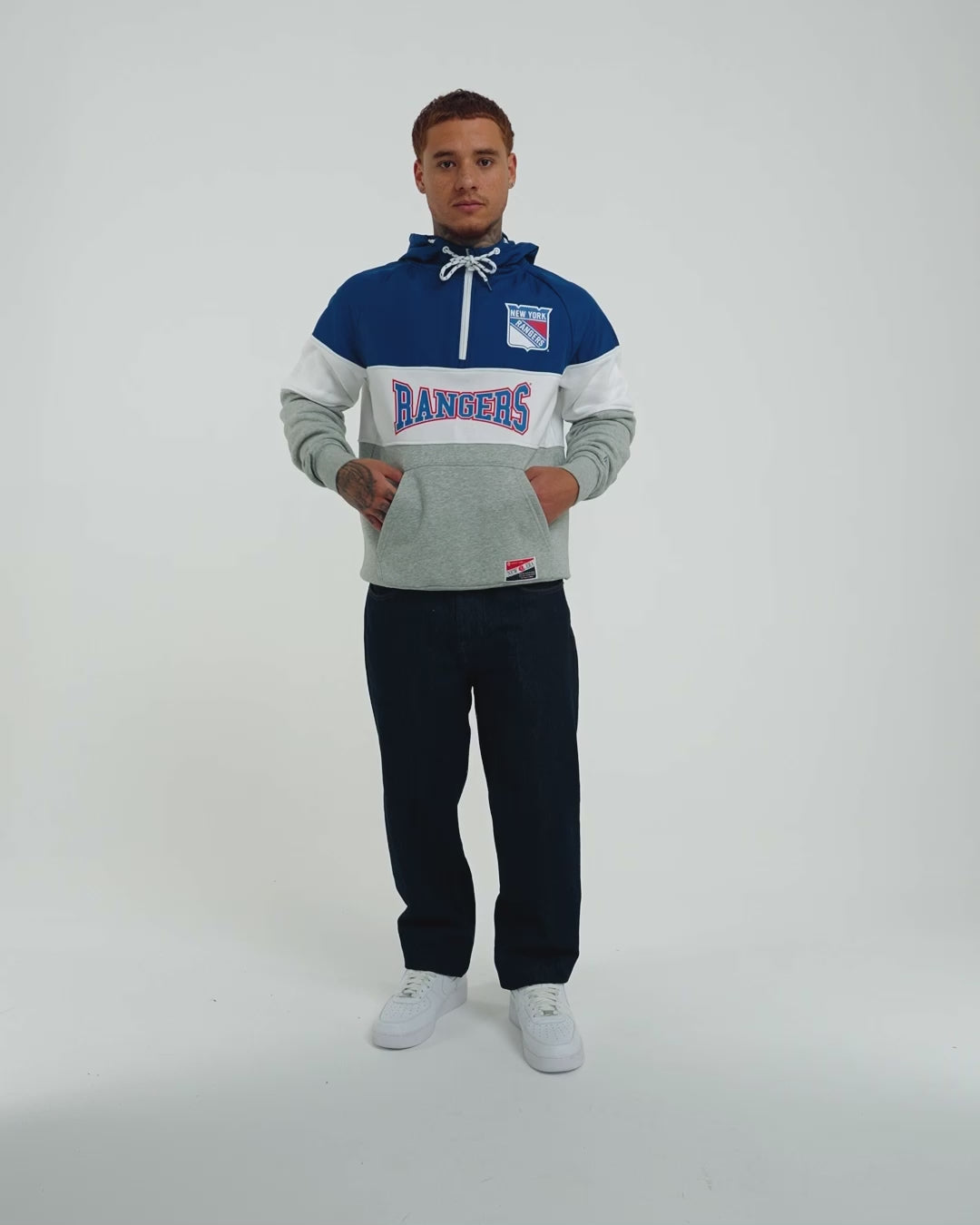 The Chicago Blackhawks Throwback Color Block Hoodie features a screen-printed Blackhawks logo and team wordmark at the front with a quarter zip closure at the collar.