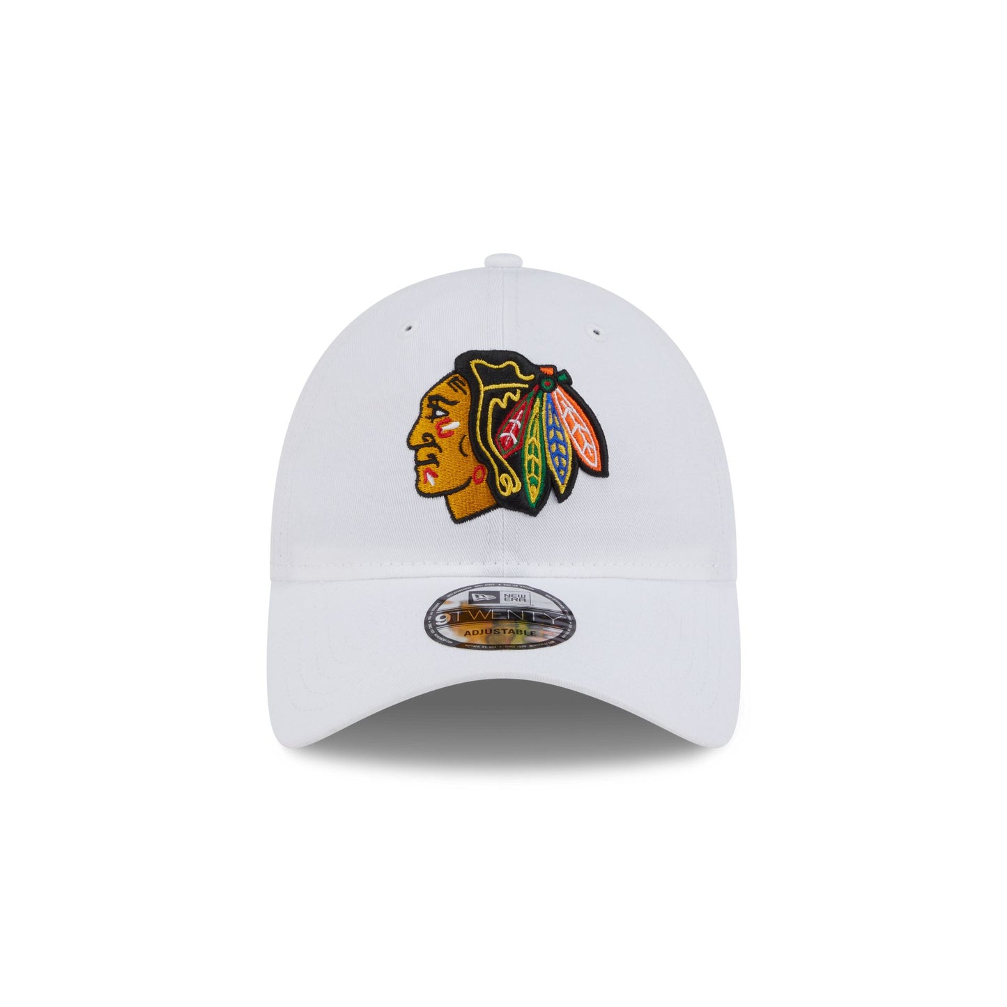 The Chicago Blackhawks White 9TWENTY Adjustable Cap features an embroidered Blackhawks logo at the front panel with a matching woven team logo tag at an adjustable D-Ring closure at the rear.