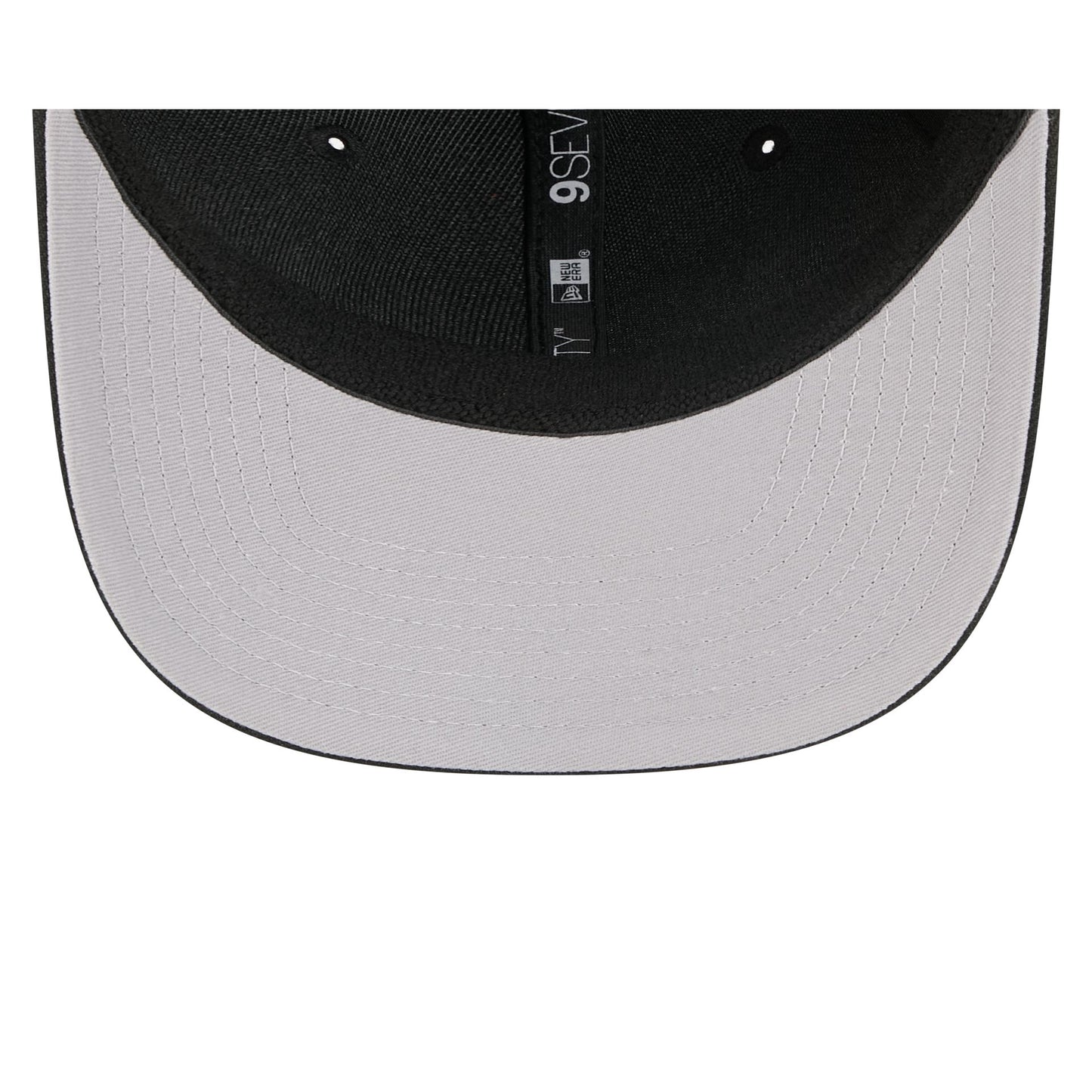 The Chicago Bulls 2025 Statement Edition 9SEVENTY Stretch-Snap features an embroidered Bulls Statement Edition logo at the front panels with a logo at the right-wear side. Additional details include the NBA Logoman above an adjustable stretch-snap closure at the rear and a gray undervisor.