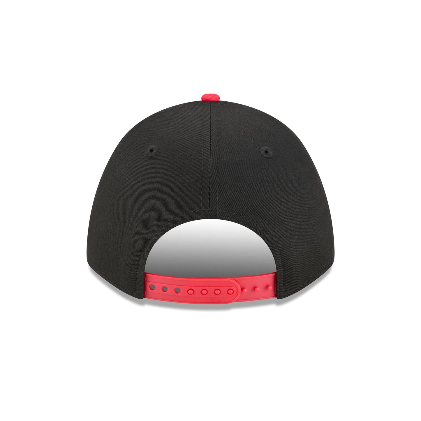 The Chicago Bulls Arch 9FORTY M-Crown A-Frame Snapback features an embroidered Bulls graphic at the front panels with a rope at the visor. Additional details include an adjustable snapback closure at the rear with a gray undervisor.