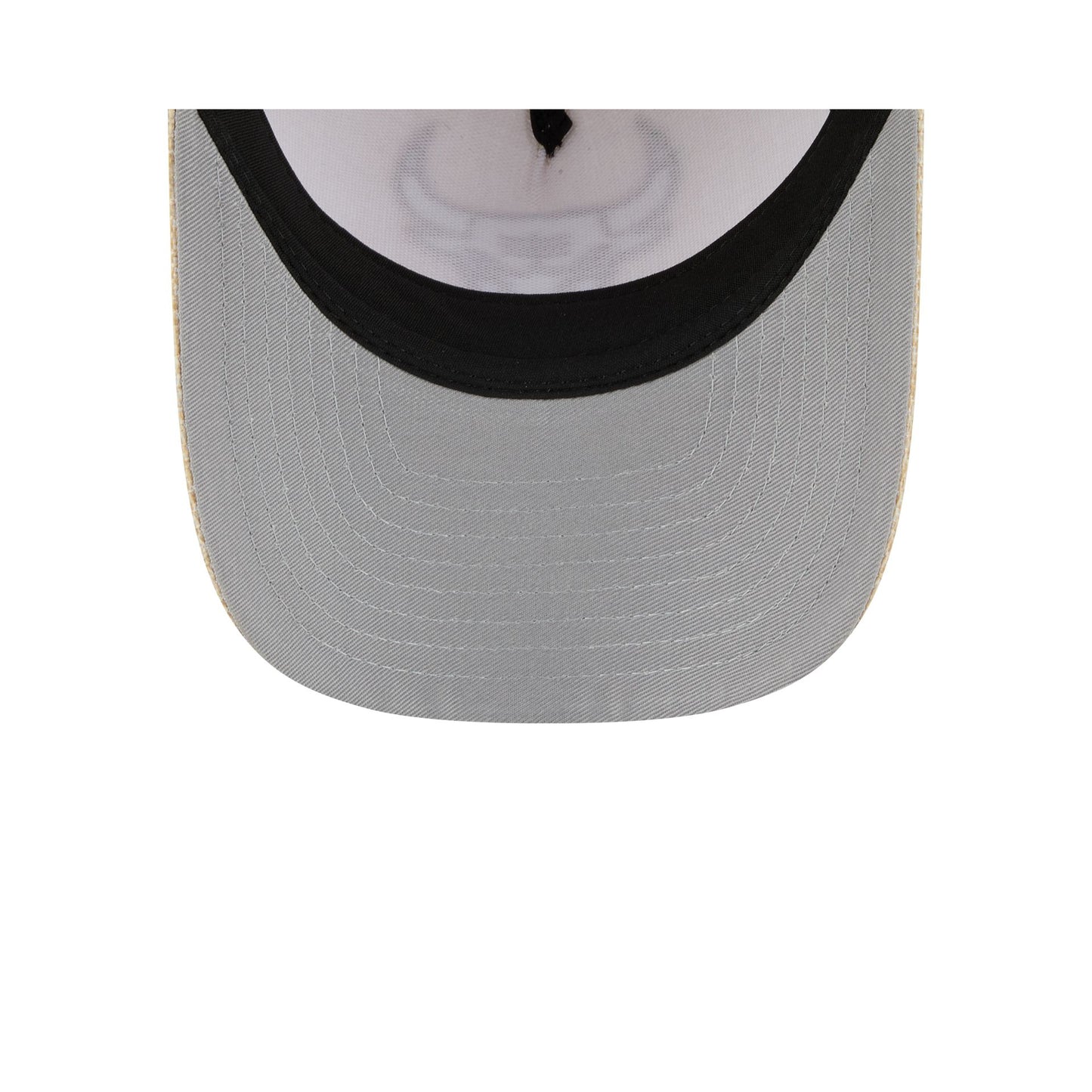 The Chicago Bulls Cotton Weave Stone 9FORTY M-Crown A-Frame Snapback features an embroidered Bulls logo at the front panels with an adjustable snapback closure at the rear and a gray undervisor.