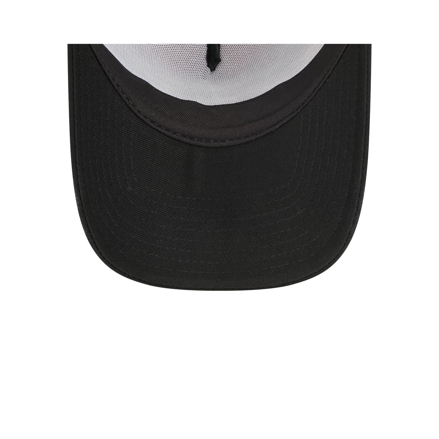 The Chicago Bulls Evergreen Check 9FORTY A-Frame Trucker features an embroidered Bulls white wordmark and logo at a checkered plaid front panel. Additional details include an adjustable snapback closure at a mesh rear.