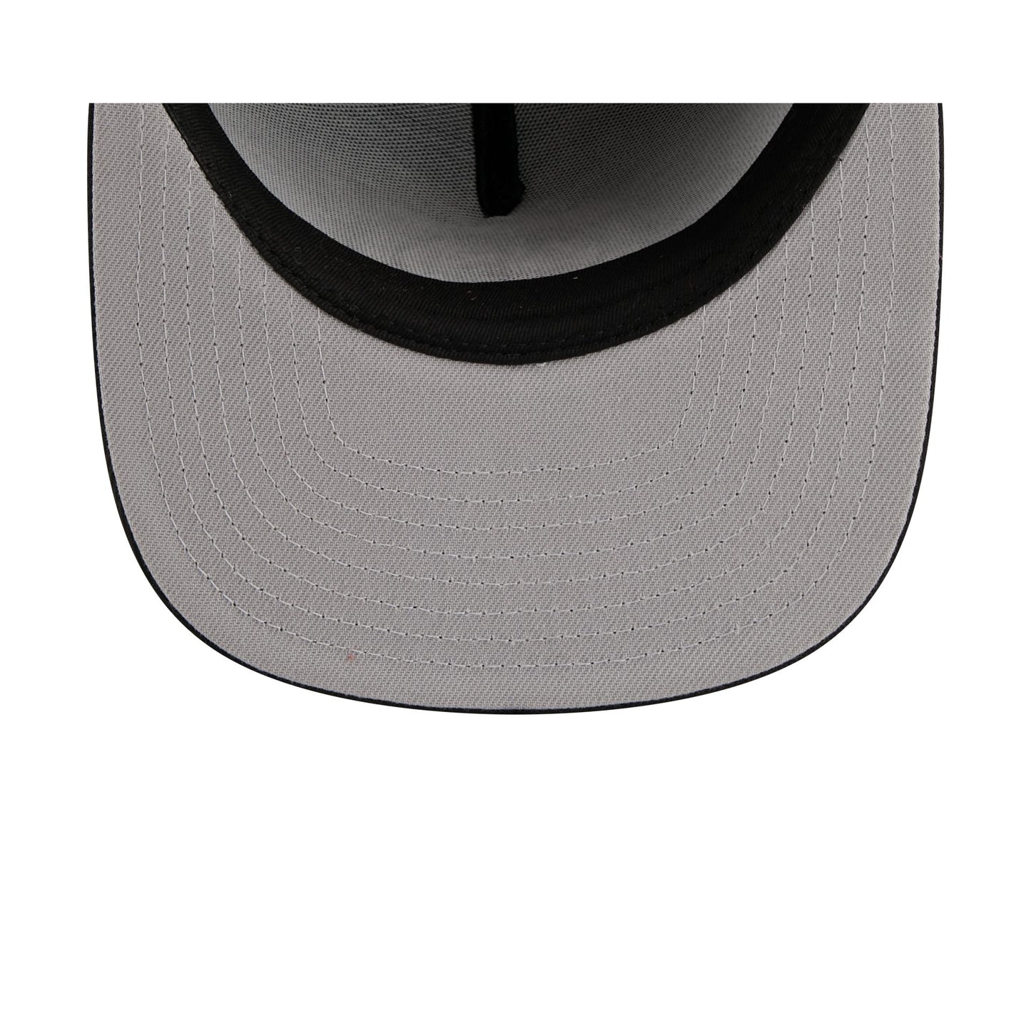 The Chicago Bulls Grunge Plaid 9FIFTY A-Frame Adjustable Cap features an embroidered Bulls logo at the front panel with a matching wordmark above an adjustable metal clasp closure at the rear, a black visor, and a gray undervisor.