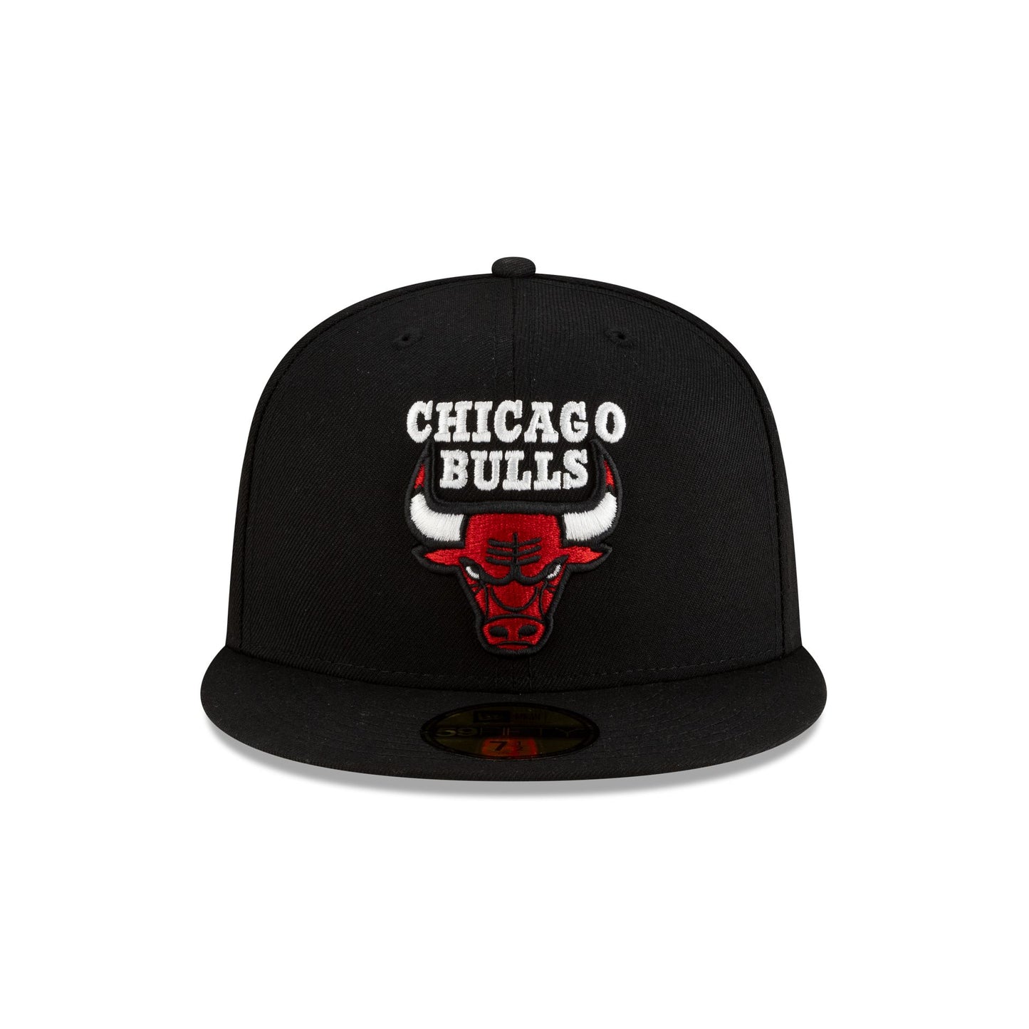 The Chicago Bulls 1966-Present Hardwood Classics Black 59FIFTY Fitted Cap features an embroidered vintage Bulls logo at the front panels with a 1988 All-Star Game patch at the right-wear side. Additional details include a Hardwood Classics