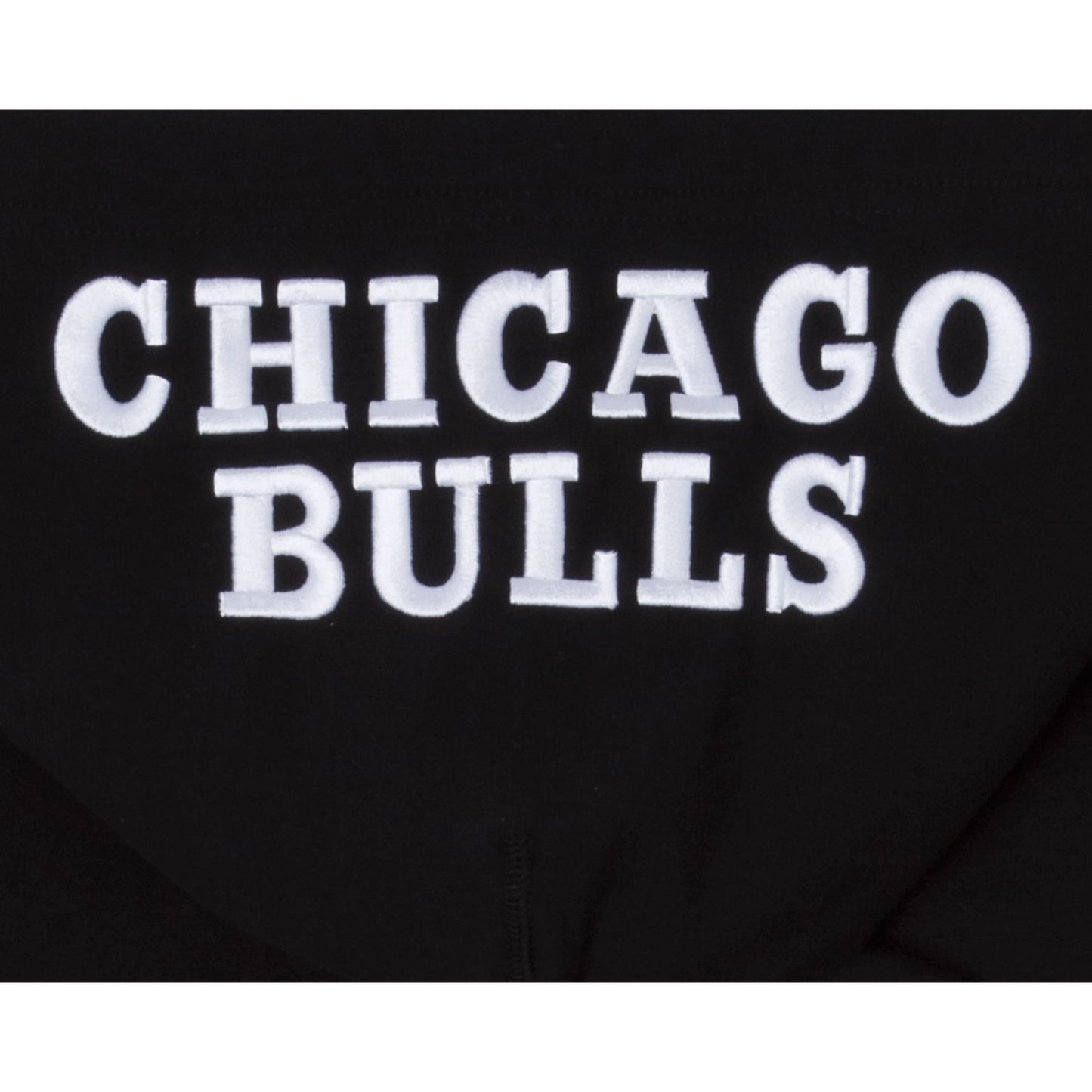 The Chicago Bulls Logo Select Hoodie features a chenille applique Bulls logo at the left chest with team patches at each sleeve and an embroidered team wordmark at the hood.