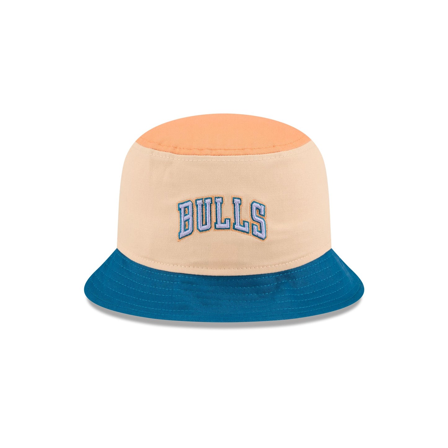 The Chicago Bulls Mango Mocha Bucket Hat features an embroidered Bulls logo at the front panels with a wordmark at the rear.