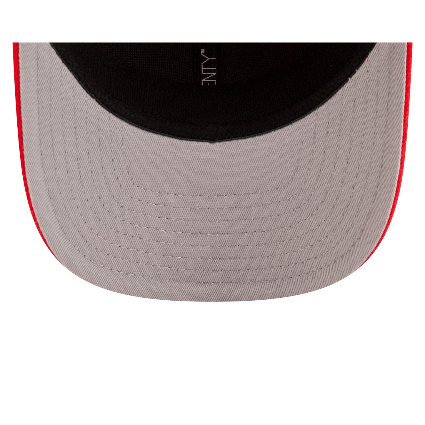 The Chicago Bulls Team Red 9SEVENTY Stretch-Snap features an embroidered Bulls logo at the front panels with the NBA Logoman above an adjustable stretch-snap closure at the rear and a gray undervisor.