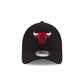 The Chicago Bulls The League 9FORTY Adjustable Cap features an embroidered Bulls logo at the front panels with the conference logo and team name on an adjustable hook and loop strap at the rear.
