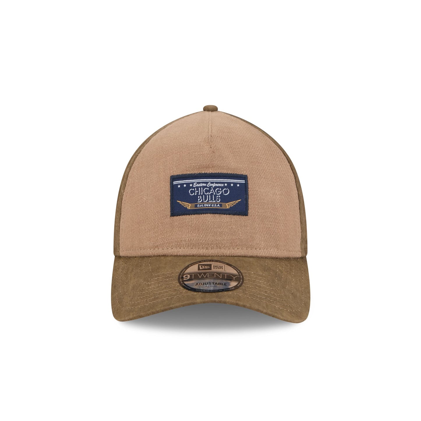 The Chicago Bulls Utility Linen 9TWENTY A-Frame Adjustable Cap features a woven Bulls tag at the front panels against a linen fabrication with a team logo at the right-wear side. Additional details include the state or city flag sublimation at the interior of the cap and an adjustable D-Ring closure at the rear.