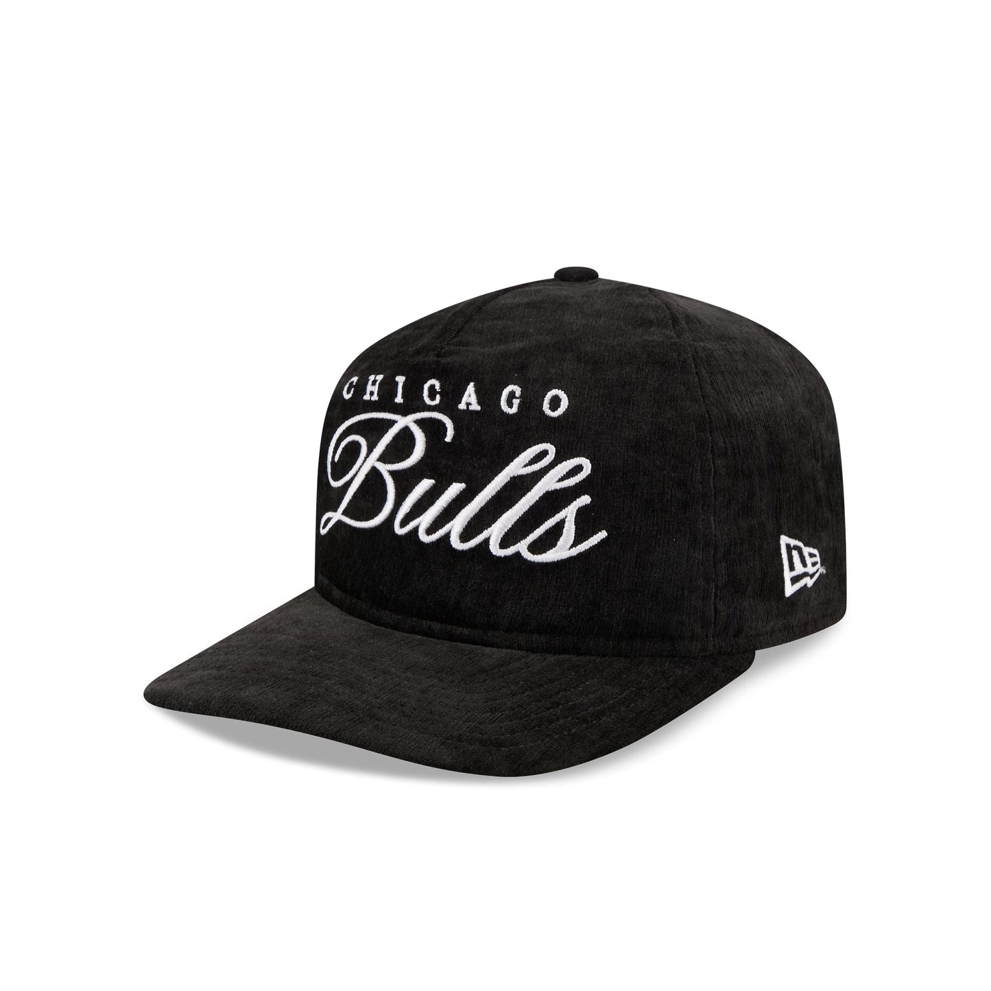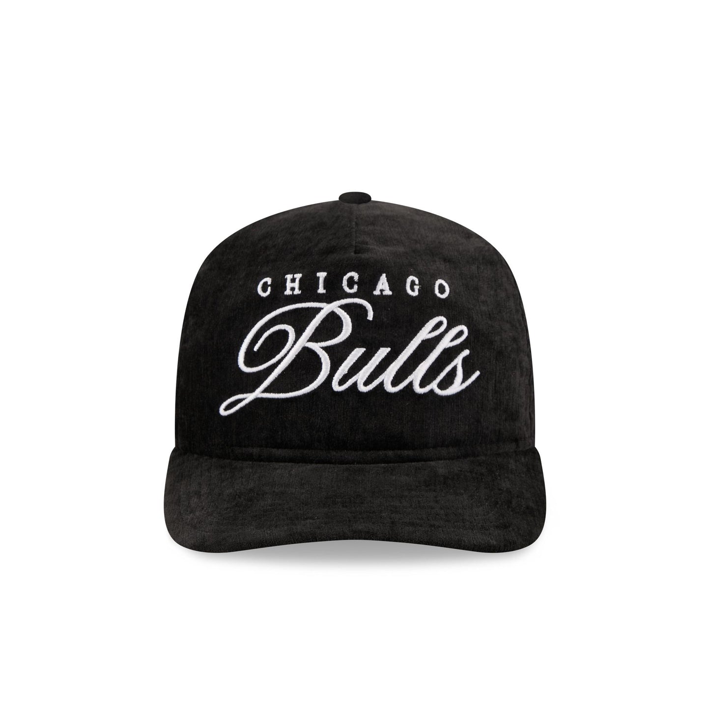The Chicago Bulls Velvet Team Script 19TWENTY Adjustable Cap features an embroidered Bulls wordmark script at the front panels with a team logo at the right-wear side. Additional details include an adjustable snapback closure at the rear and a gray undervisor.