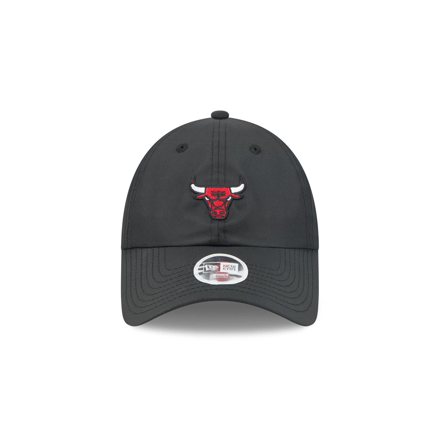 The Chicago Bulls Women's Open Back Ponytail Cap features an embroidered Bulls logo at the front panels with elastic straps and an open panel at the rear to accommodate any hairstyle.