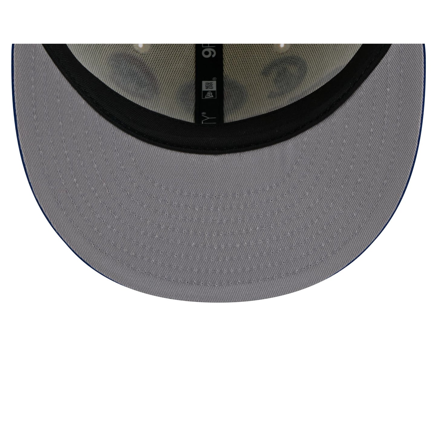 The Chicago Cubs Archive 9FIFTY Snapback features an embroidered Cubs wordmark and various team logos at the front panels with a snapback closure at the rear and a gray undervisor.