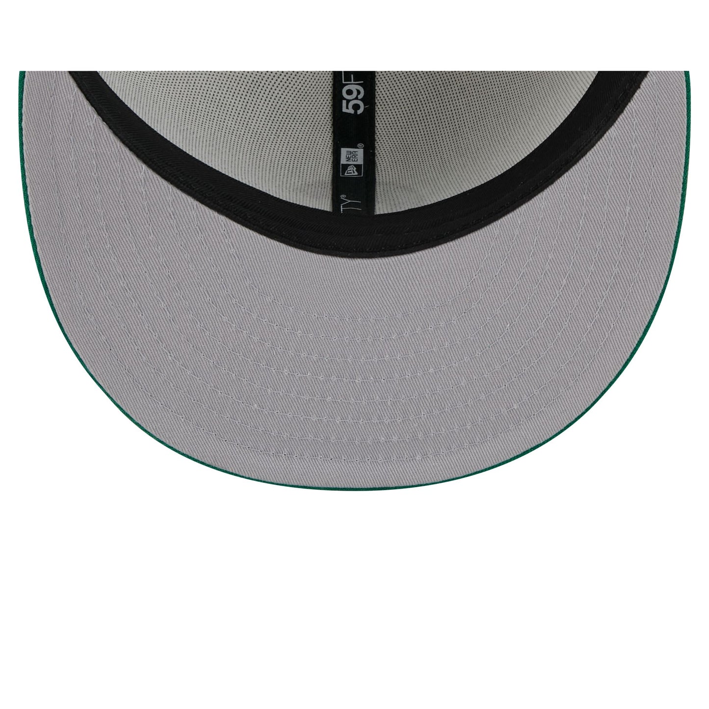 The Chicago Cubs Beaded Linen 59FIFTY Fitted Cap features a red, white and green beaded Cubs logo at the front panels with a matching MLB Batterman logo at the rear. Additional details include an embroidered team wordmark at the right-wear side with a green visor and a gray undervisor.