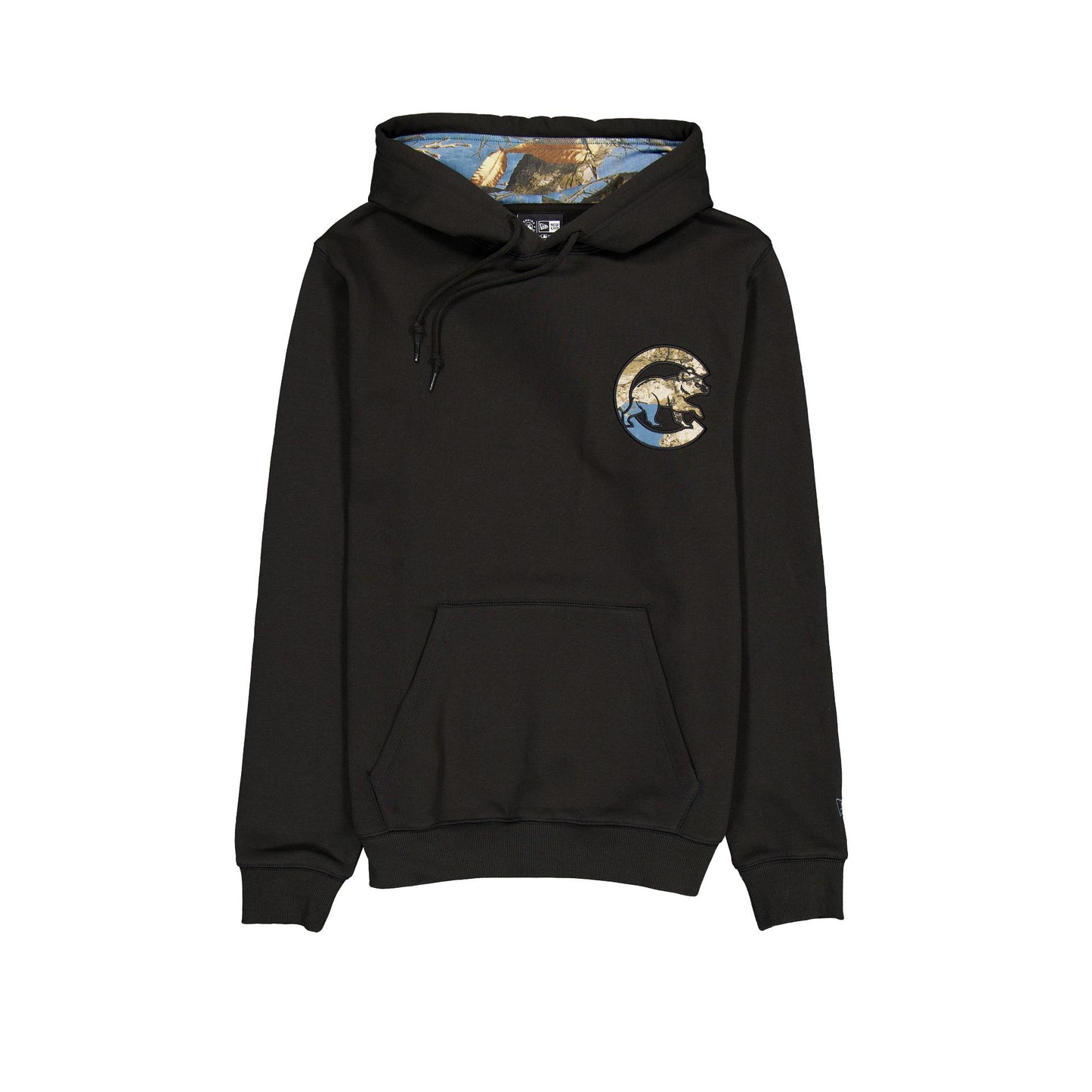 The Chicago Cubs Black Realtree Hoodie features an embroidered Cubs reflective ink Realtree applique with kangaroo pockets, blue Realtree lining, and a team wordmark at the hood.