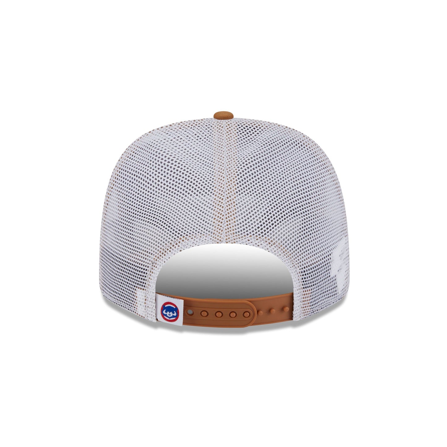 The Chicago Cubs Bronze 9SEVENTY Trucker features an embroidered Cubs Cooperstown logo at the front panels with a matching woven team tag at a snapback closure at the rear.