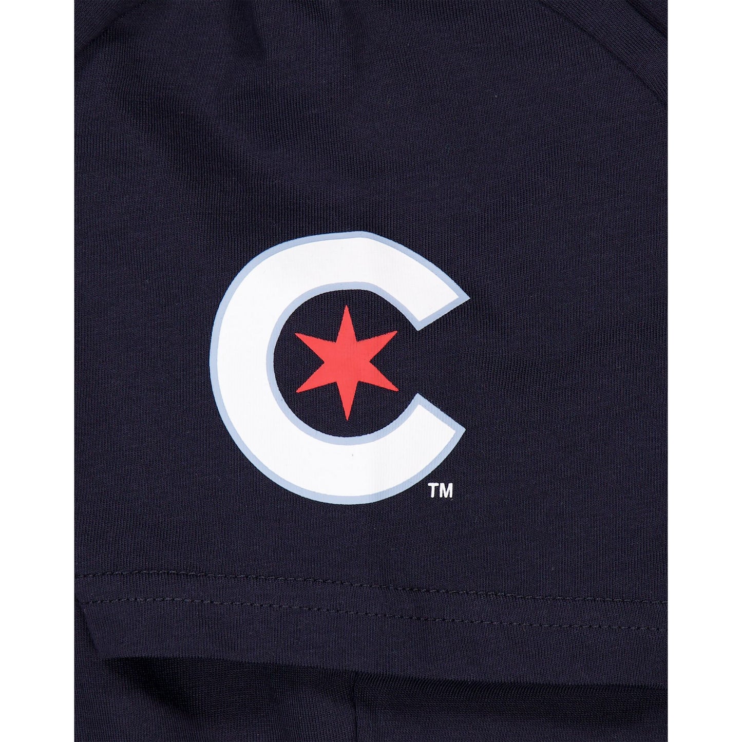 Jersey inspired, city connected. The Chicago Cubs City Connect Women's T-Shirt features a screen-printed Cubs wordmark and logo at the front with an alternate team logo at the left-wear sleeve.