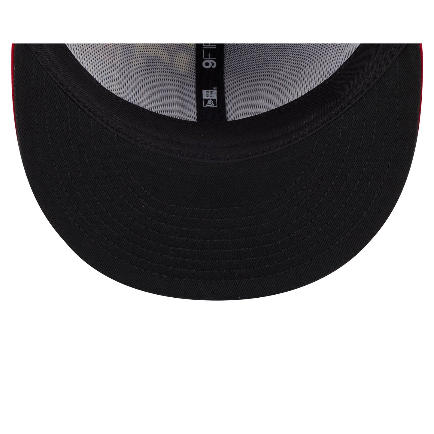 The Chicago Cubs Diamond Hero Edition 9FIFTY Snapback features an embroidered Cubs onomatopoeia pop wordmark at the front panels with baseball comic book prints at the front and back panel. Additional details include a ZOOM! wordmark at the left-wear side, the MLB Batterman logo above a snapback closure at the rear, and a gray undervisor.
