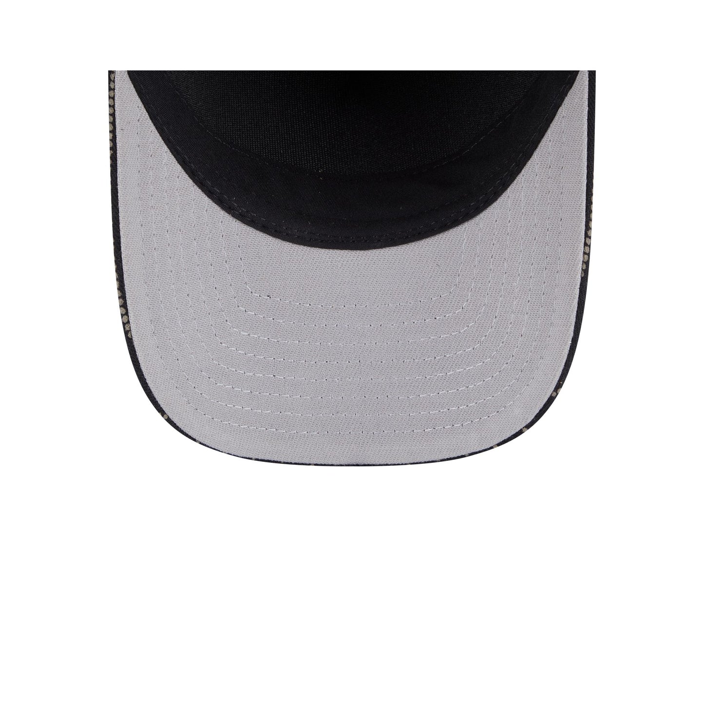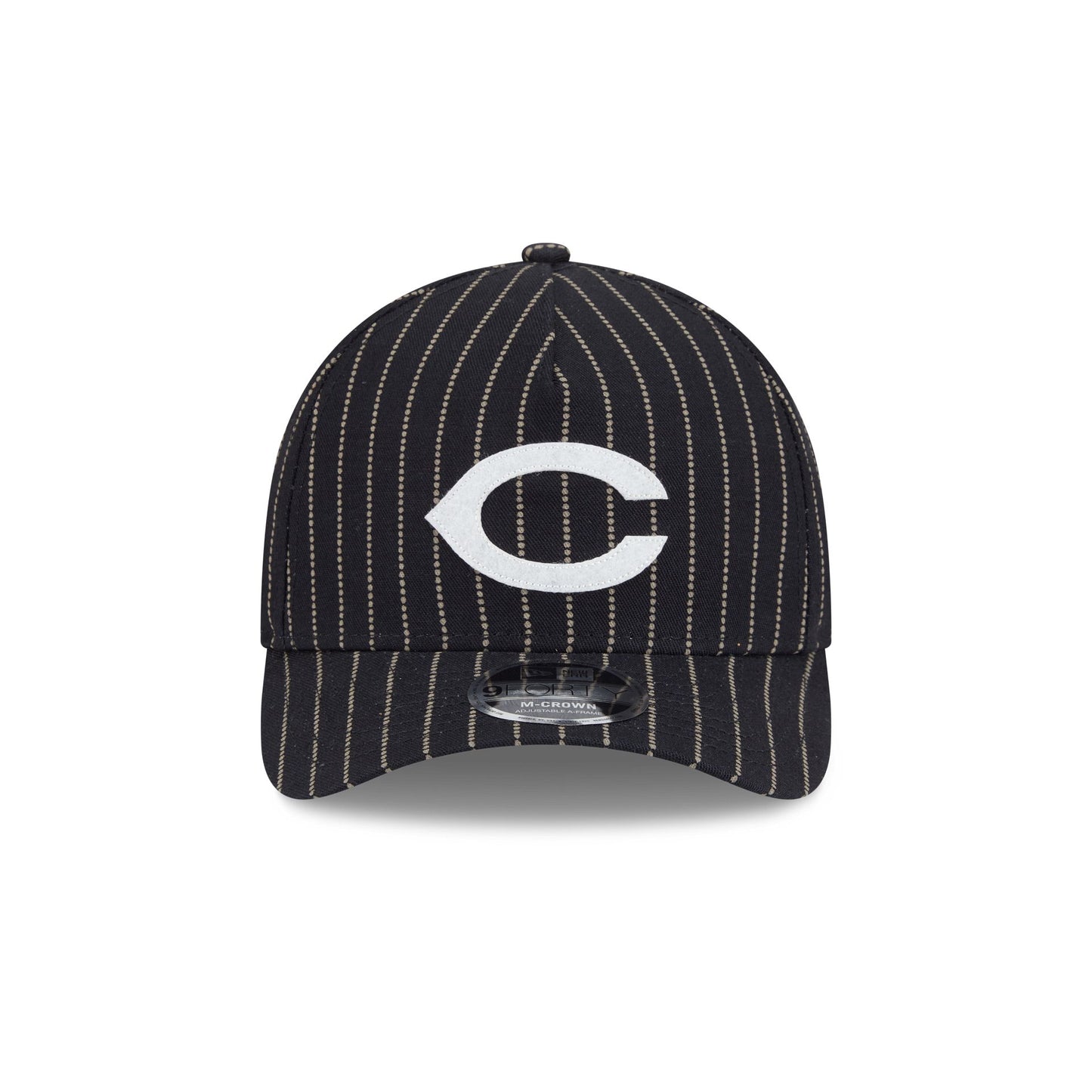 The Chicago Cubs Dotted Pinstripe 9FORTY M-Crown A-Frame Adjustable Cap features an embroidered Cubs Cooperstown logo at the front panels against a specialty Japanese milled selvedge denim from Three Looms Japan Fabrics throughout the cap. Additional details include a team wordmark above an adjustable belt closure at the rear and a gray undervisor.