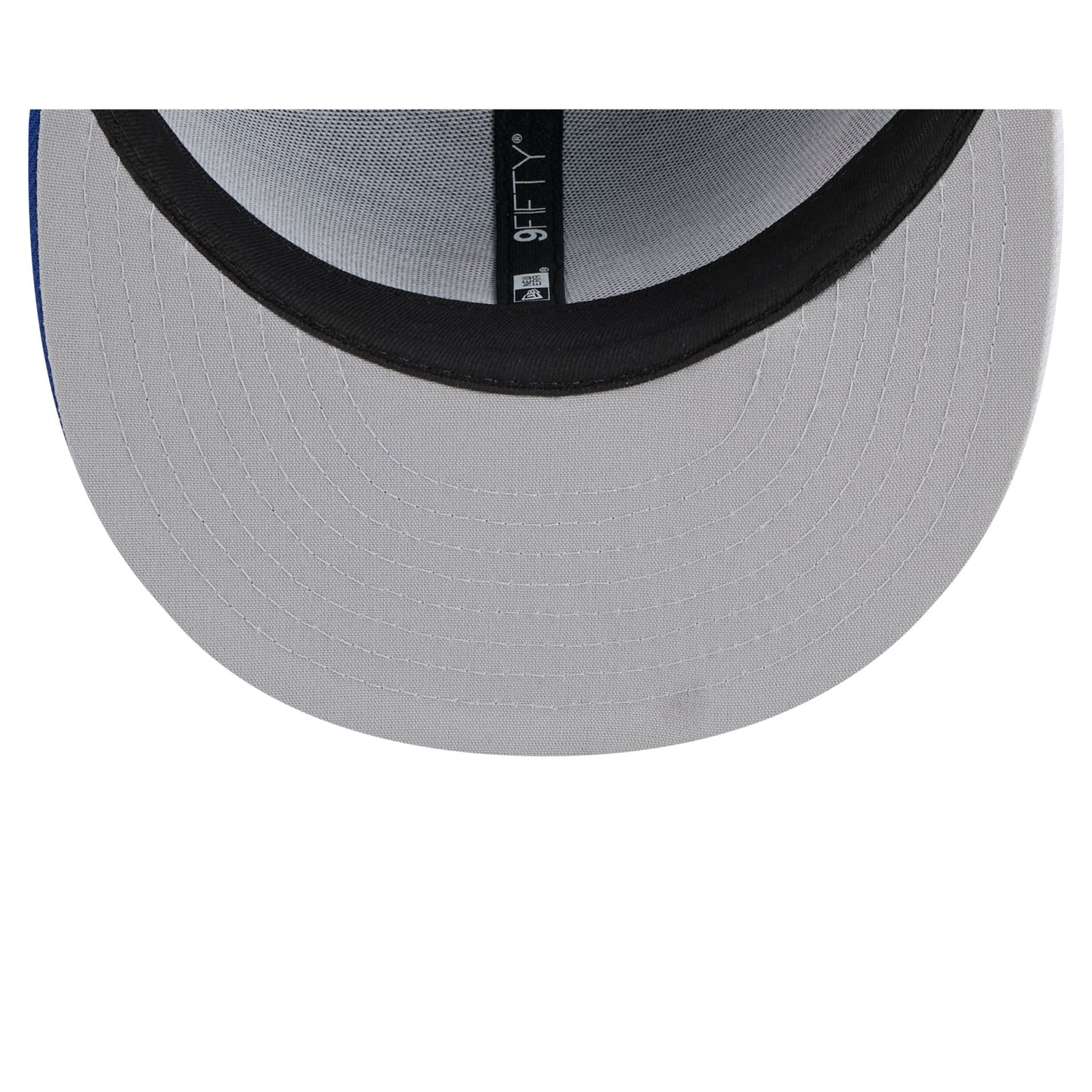 The Chicago Cubs Ernie Banks 9FIFTY Snapback features an embroidered Cubs logo at the front panels with the player's name and number at the right-wear side. Additional details include a snapback closure at the rear and a gray undervisor.