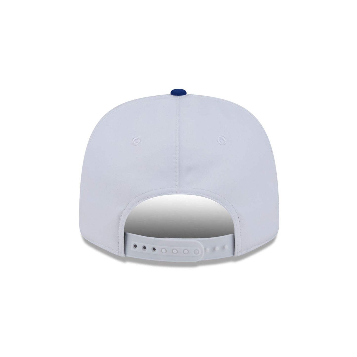 The Chicago Cubs GORE-TEX White 9SEVENTY Stretch-Snap features an embroidered Cubs logo at the front panels with a metallic sheen silicone New Era Flag logo and GORE-TEX logo at the left-wear side. Additional details include an adjustable snapback closure at the rear, a gray undervisor, and a polyester fabrication throughout the cap. It is waterproof, breathable, and lightweight.