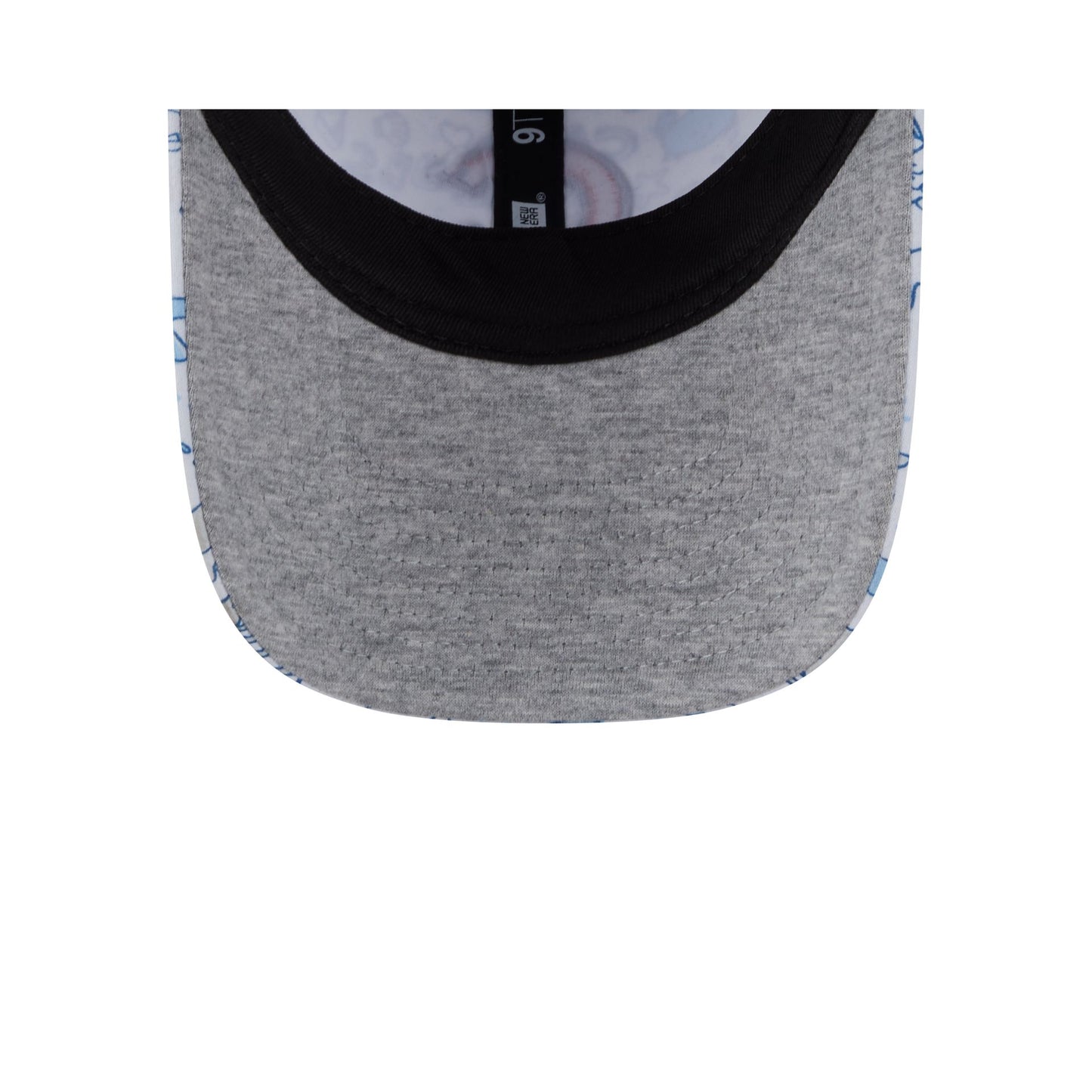 The Chicago Cubs Kids Ocean 9TWENTY Adjustable Cap features an embroidered Cubs logo at the front panels with a nautical design throughout the cap. Additional details include a stretch strap closure at the rear and a gray undervisor.