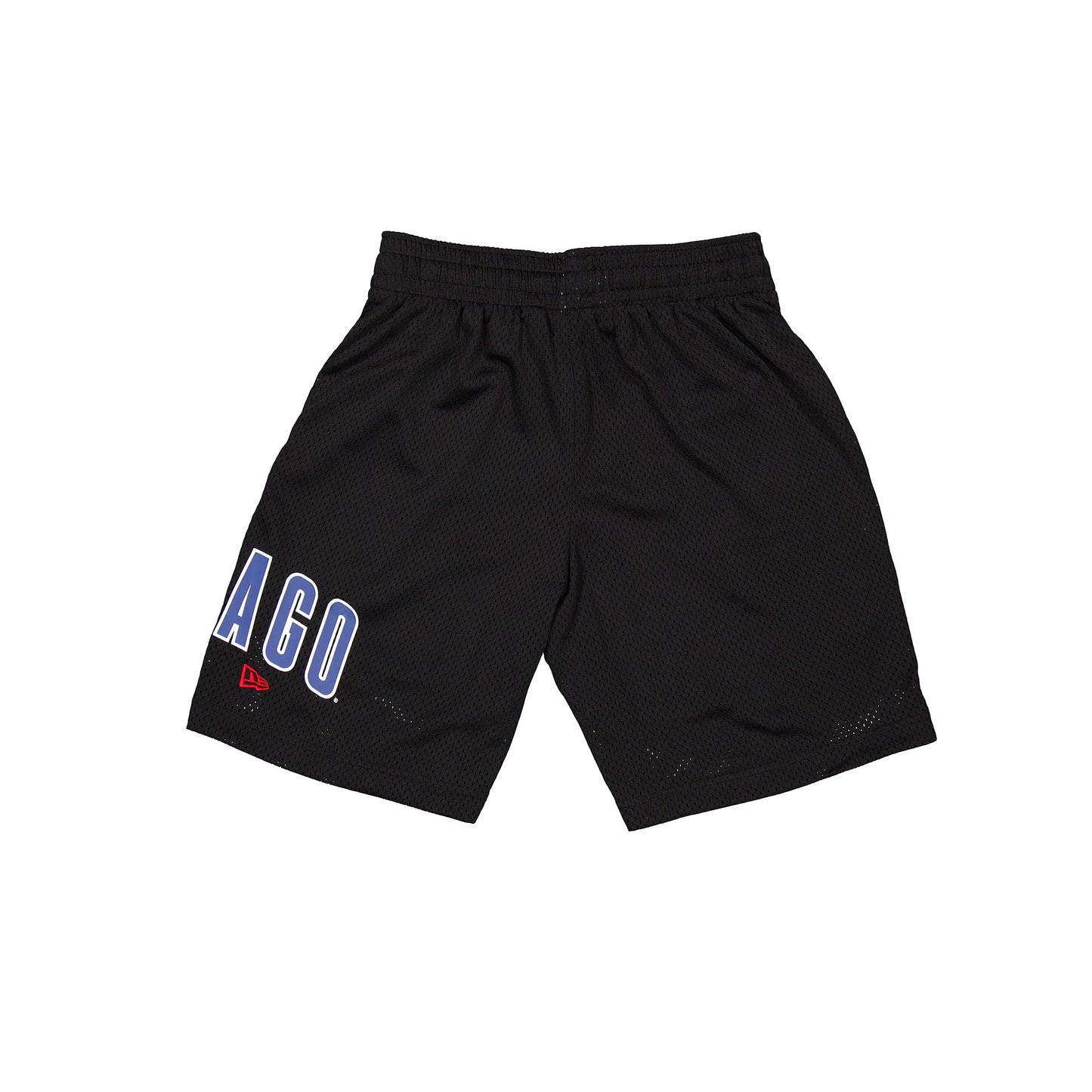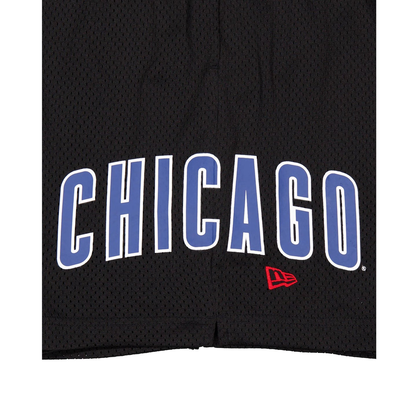 The Chicago Cubs Mesh Shorts features a screen-printed Cubs logo at the left leg with a team wordmark at the right leg.