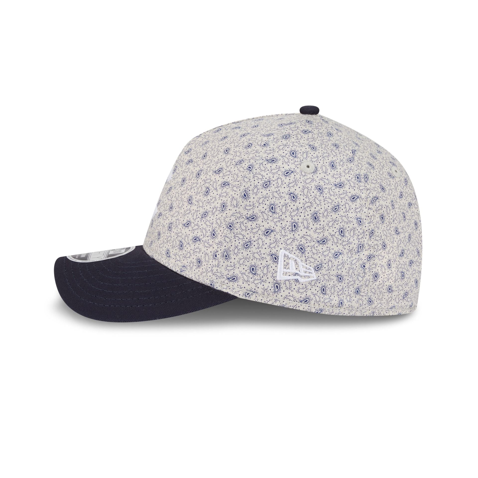 The Chicago Cubs Micro Print 9FORTY M-Crown A-Frame Adjustable Cap features an embroidered Cubs logo at the front panels against a specialty Japanese milled woven fabric from Three Looms Japan Fabrics.. Additional details include an adjustable D-Ring closure at the rear.