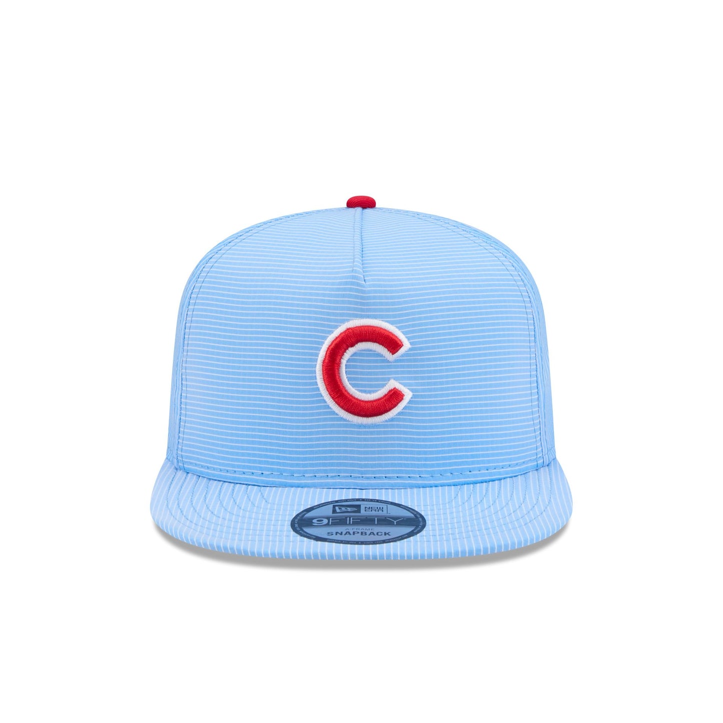 The Chicago Cubs Pinstripe Ripstop 9FIFTY A-Frame Snapback features an embroidered Cubs logo at the front panels with an adjustable snapback closure at the rear.
