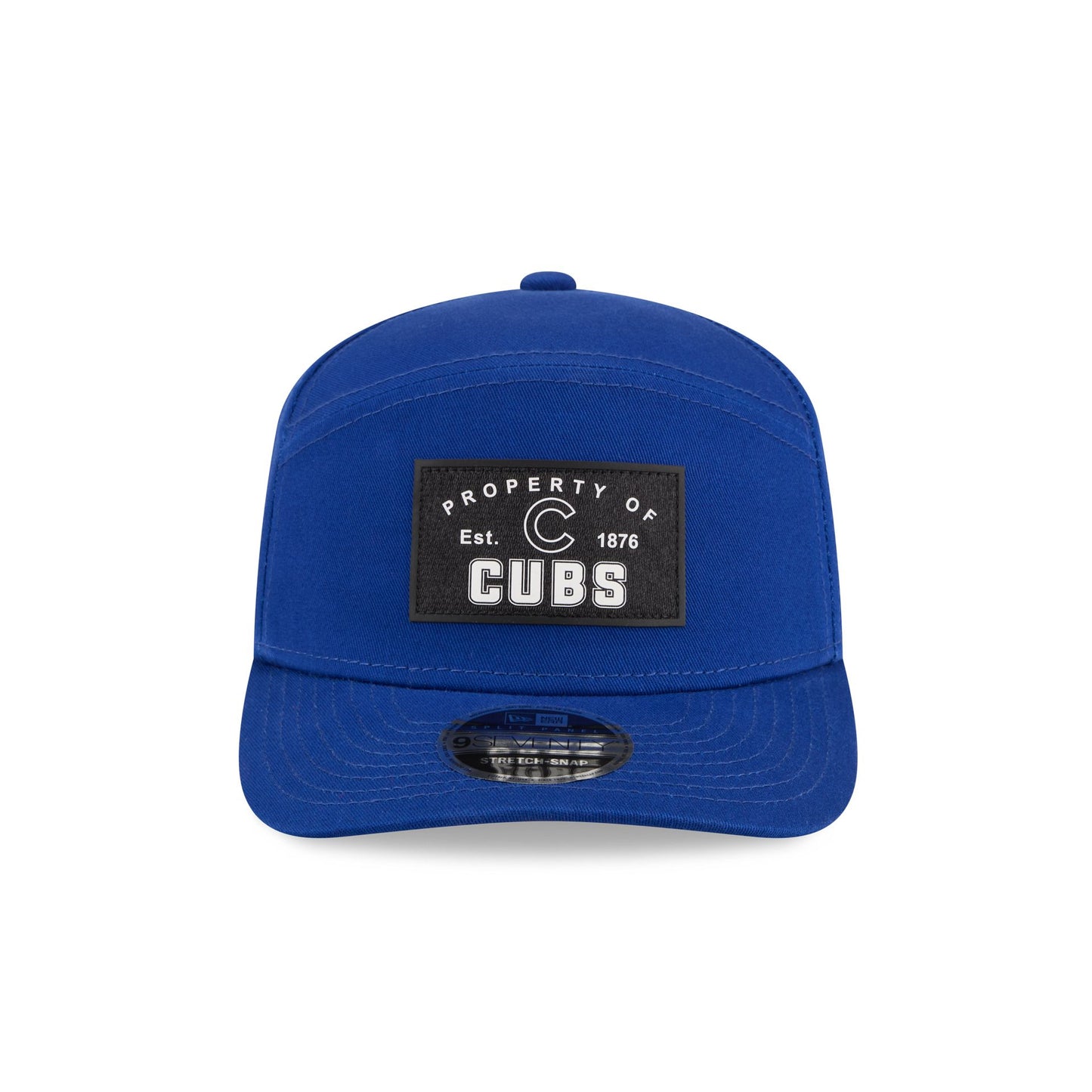 The Chicago Cubs Property of Patch Split Panel 9SEVENTY Stretch-Snap features a woven "Property of" Cubs patch a the front panels with a split crown construction. Additional details include an adjustable stretch-snap closure at the rear and a gray undervisor.