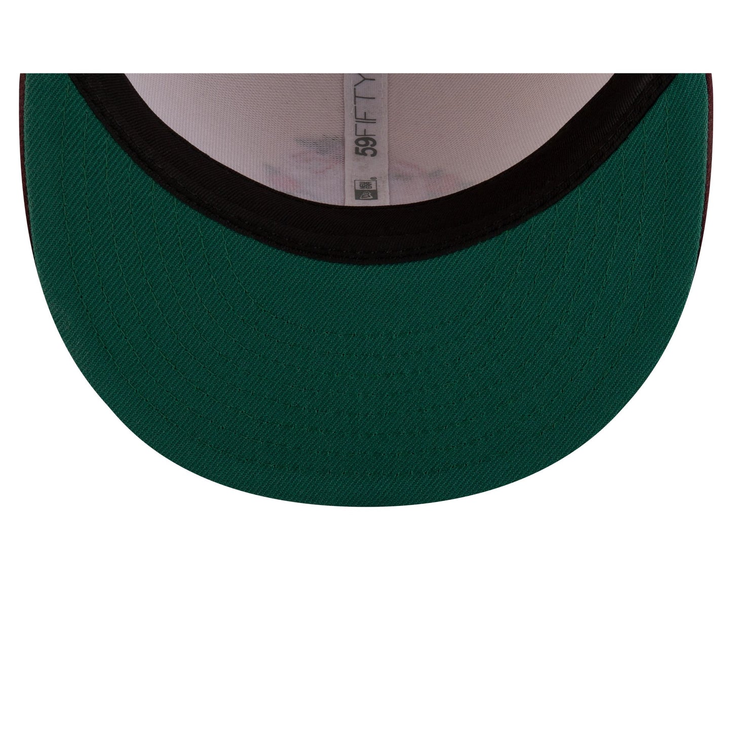 The Chicago Cubs Roses 59FIFTY Fitted Cap features an embroidered Cubs roses logo at the front panels with a matching MLB Batterman logo and heart at the rear. Additional details include a team logo on the right-wear side and a gray undervisor.