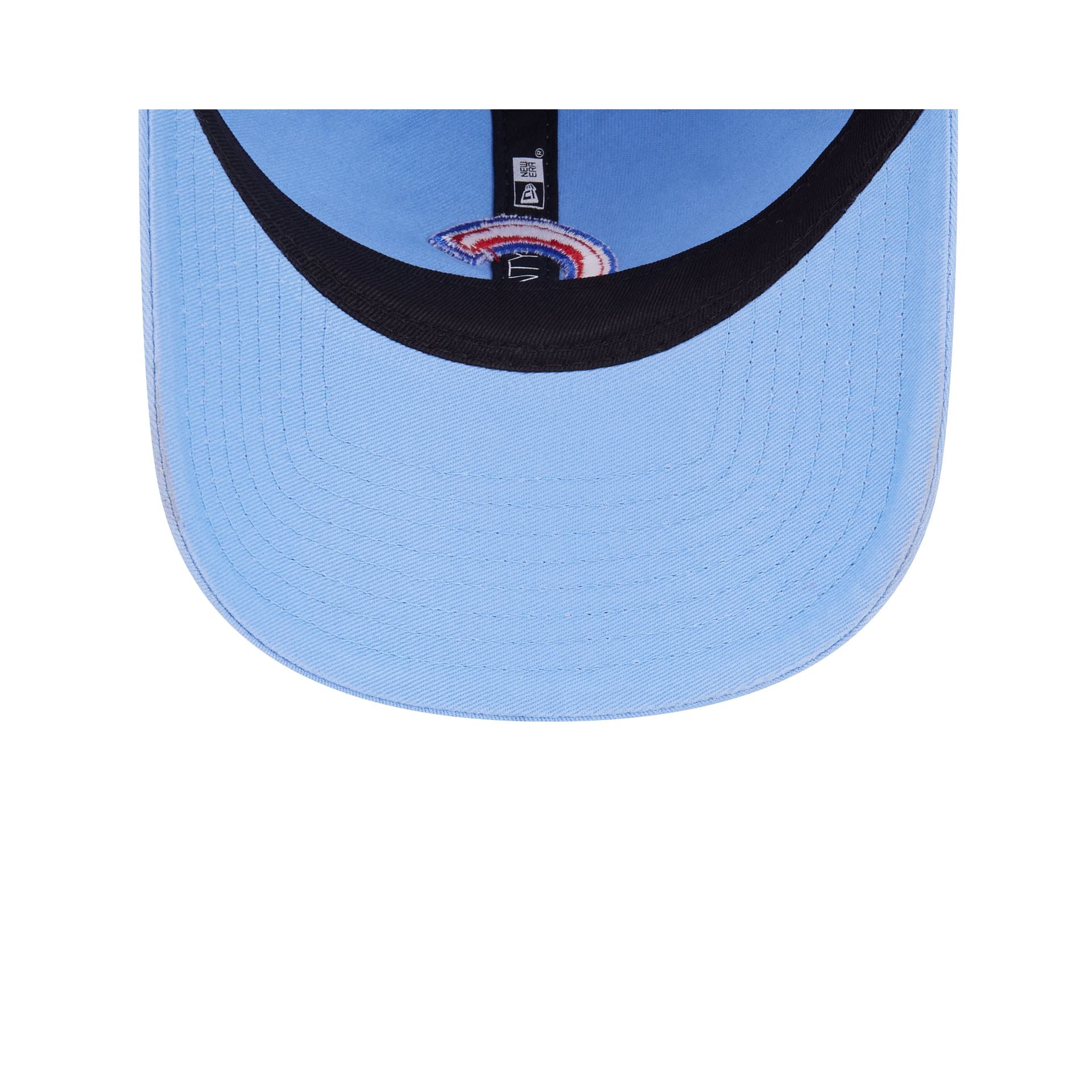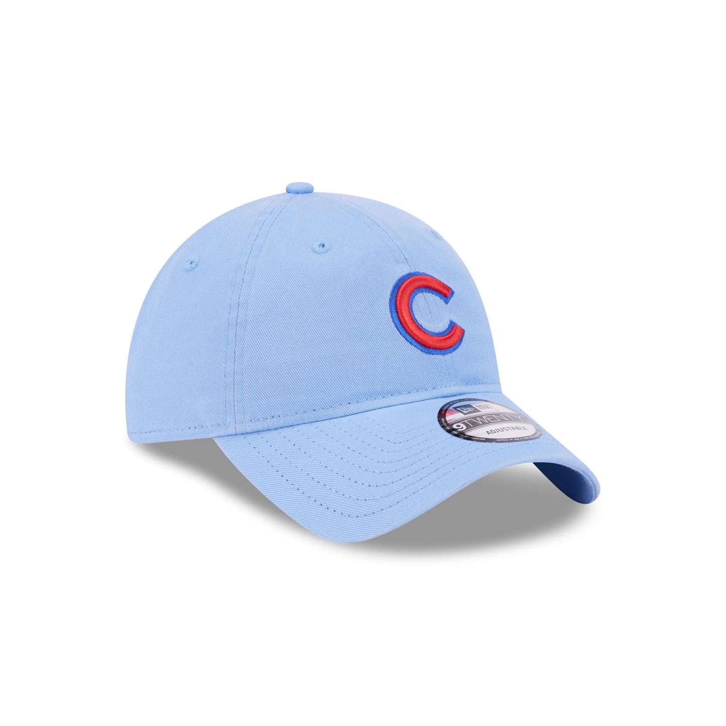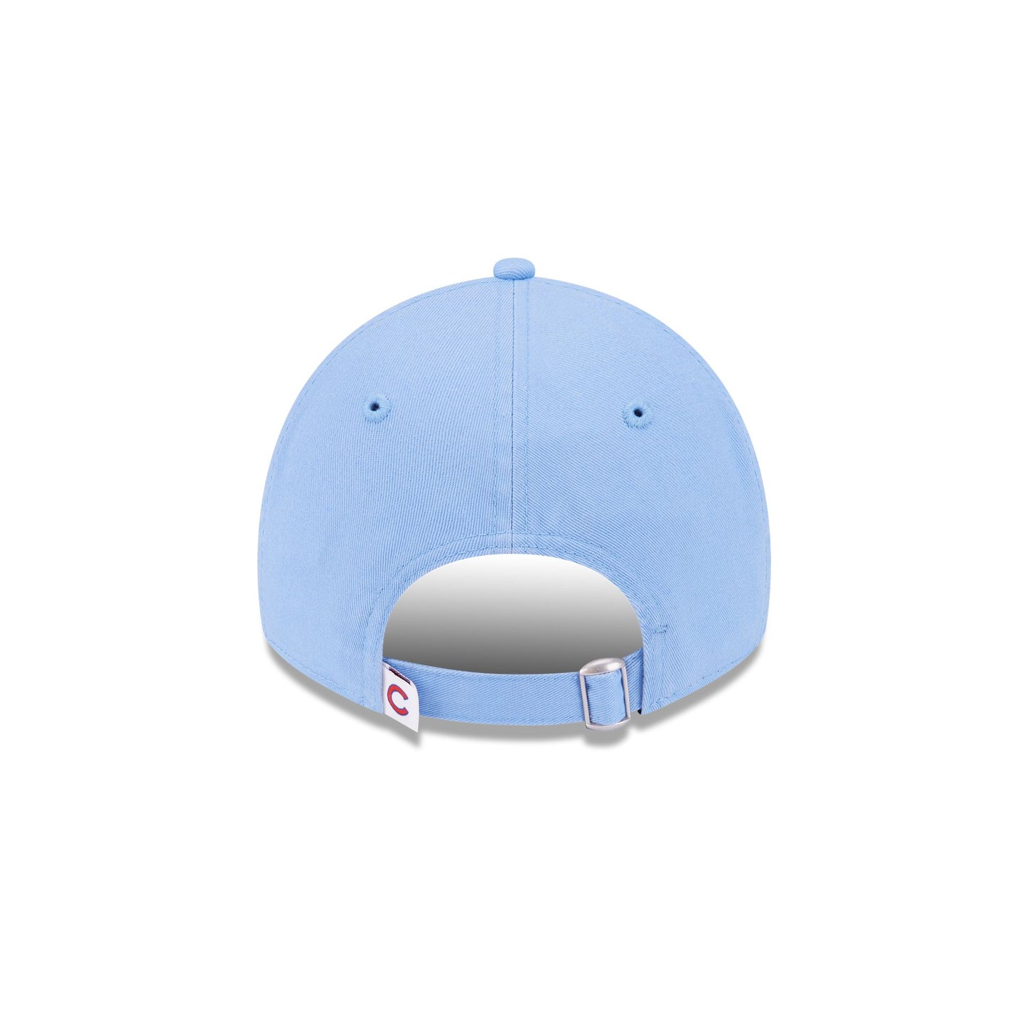The Chicago Cubs Sky Blue 9TWENTY Adjustable Cap features an embroidered Cubs logo at the front panels with a matching woven team logo tag at the adjustable D-Ring closure at the rear.
