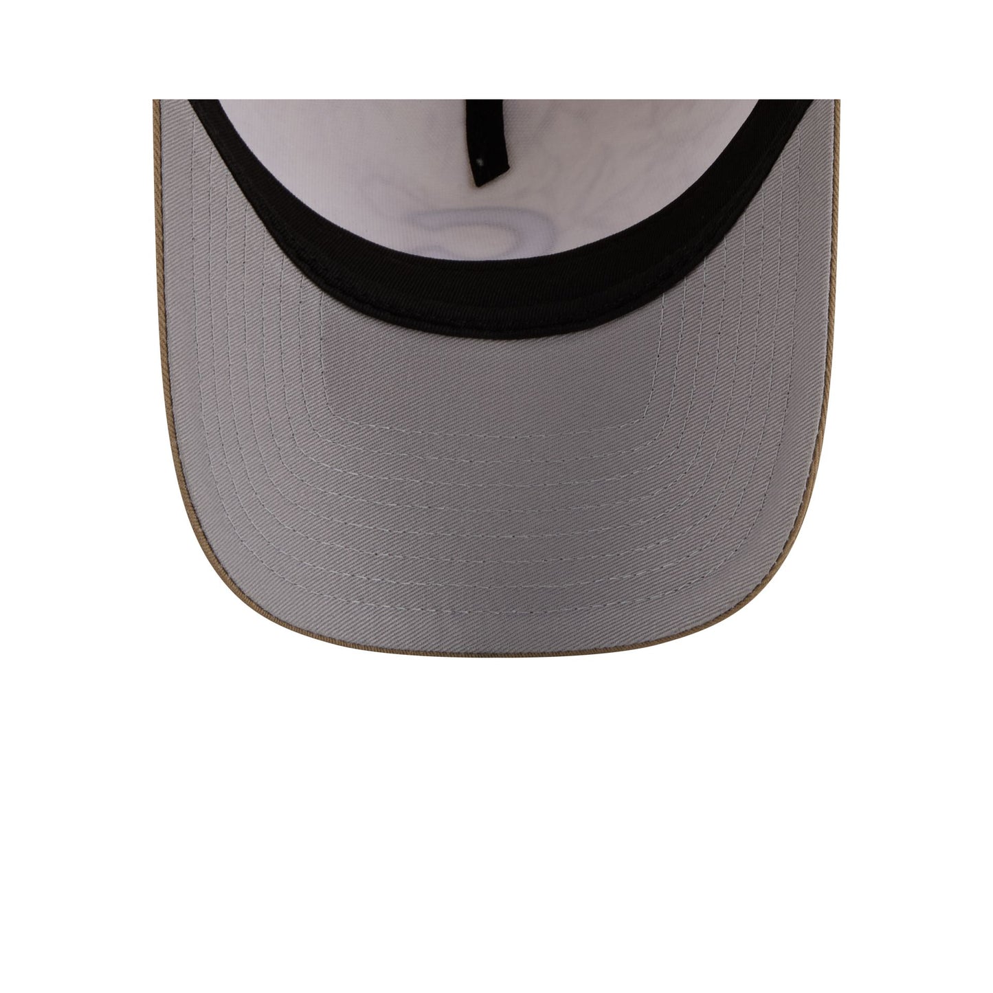 The Chicago Cubs Spring Floral 9FORTY A-Frame Snapback features an embroidered Cubs logo at the front panel with a floral print cotton twill all over fabrication, an adjustable snapback closure at the rear, a khaki visor, and a gray undervisor.