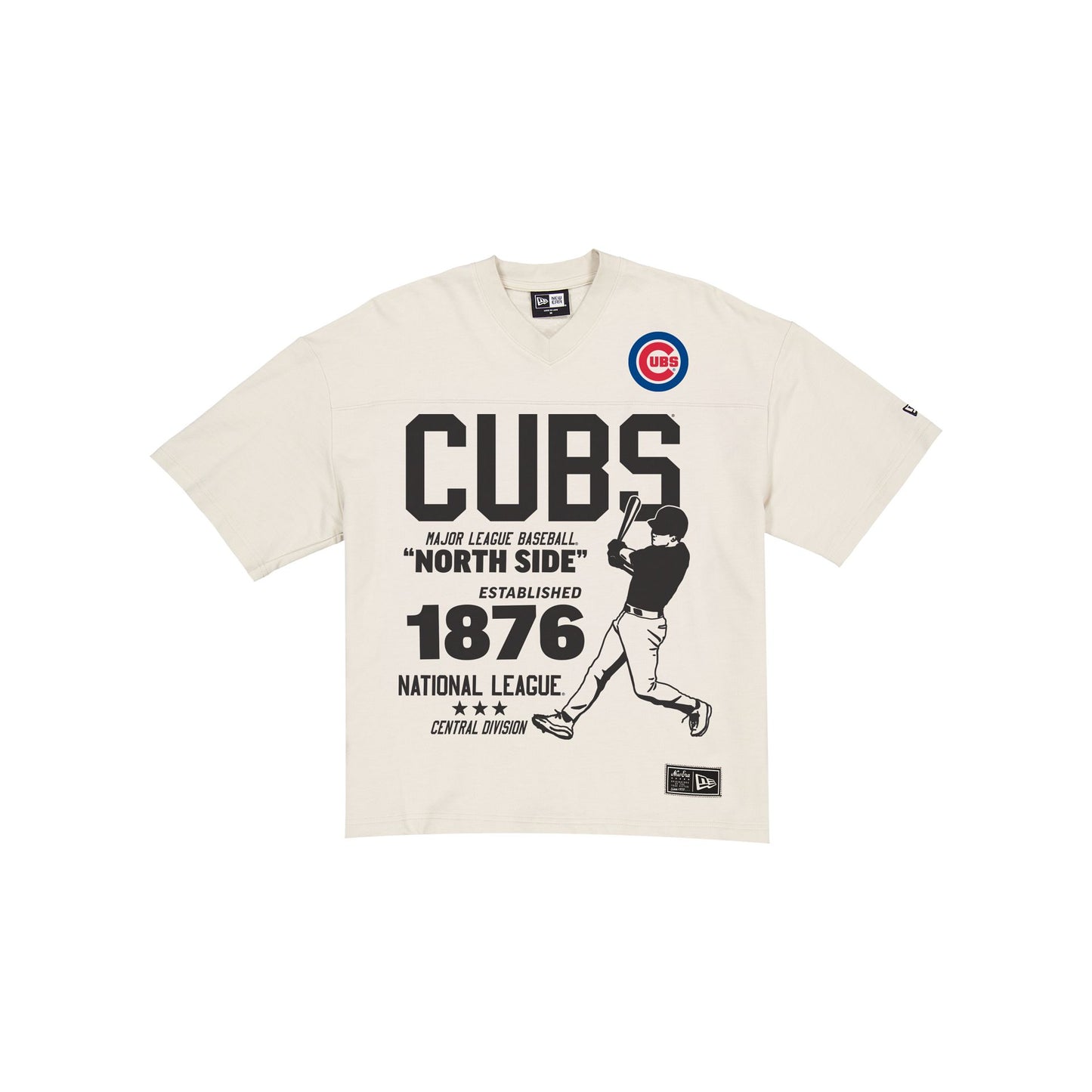 The Chicago Cubs Throwback Prep Stone T-Shirt features a screen-printed Cubs graphic at the front with a team logo at the left chest and a New Era jock tag at the left hip.