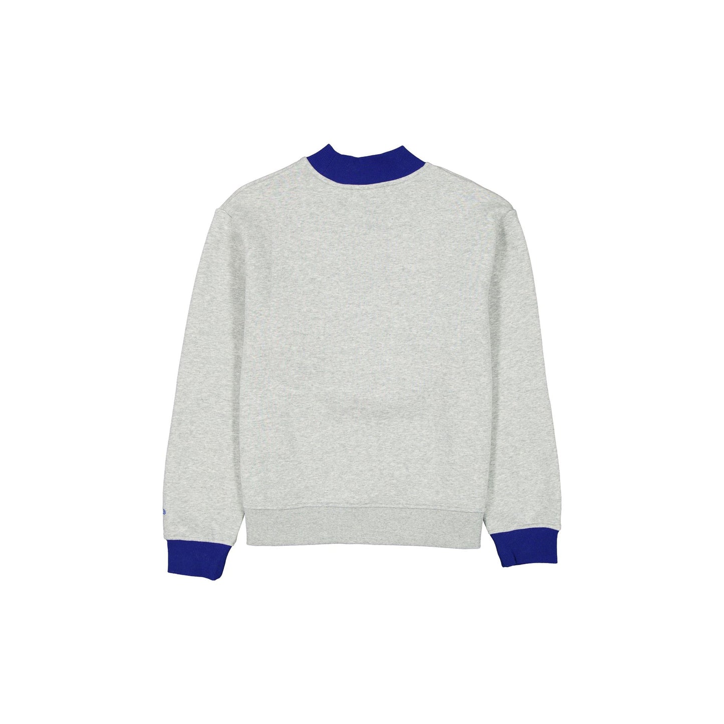 The Chicago Cubs Throwback Prep Women's Mockneck Sweatshirt features an embroidered Cubs wordmark above a team emblem at the front with a matching logo at the neckline.