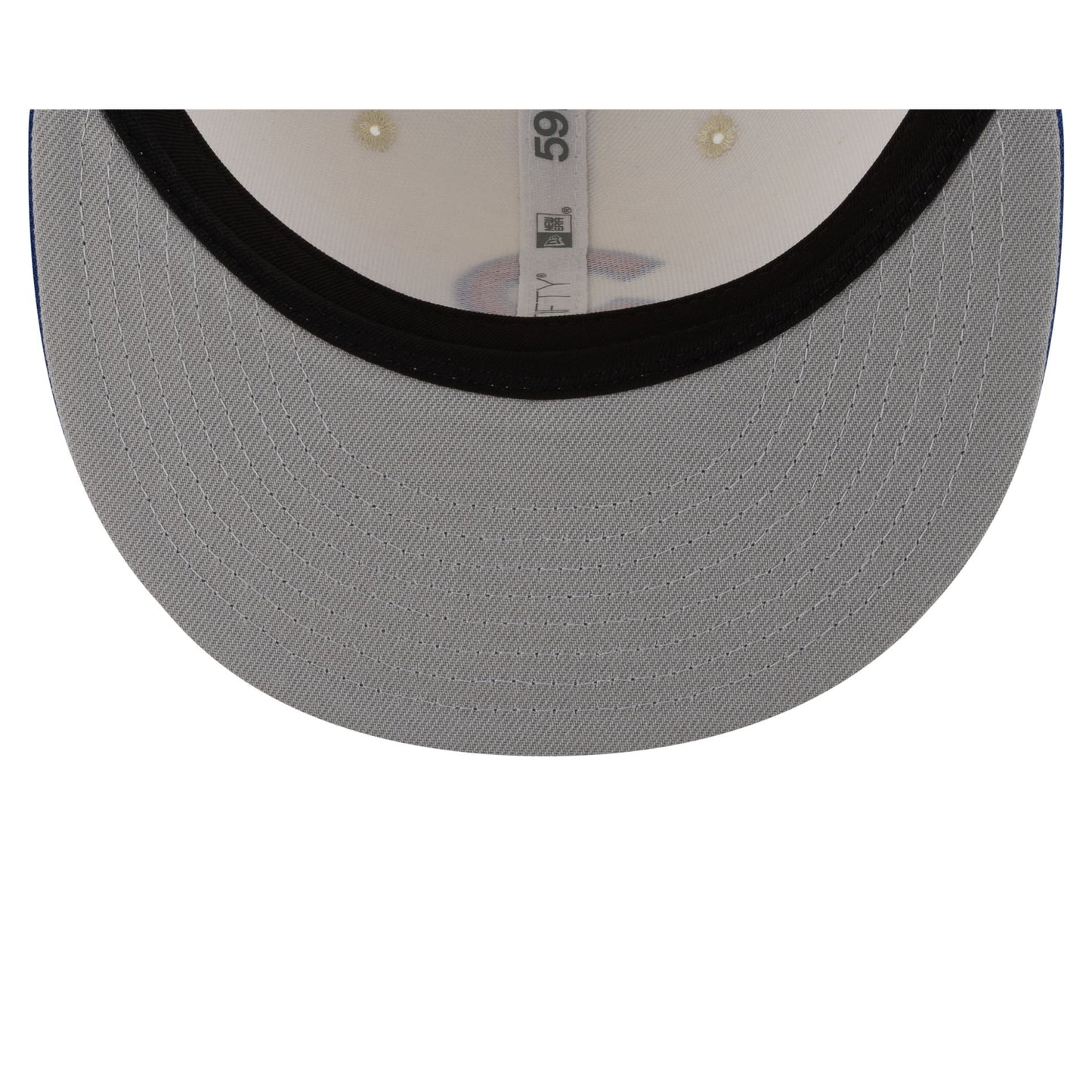 The Chicago Cubs Upside Down 59FIFTY Fitted Cap features an embroidered Cubs upside down logo at the front panels with the MLB Batterman logo at the rear and a gray undervisor.