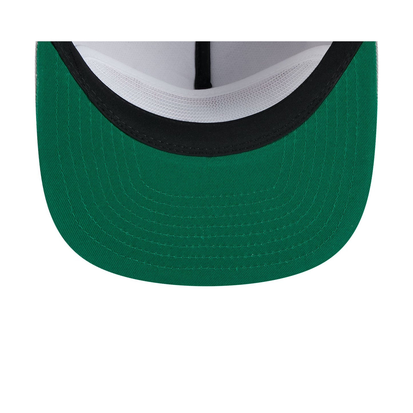 The Chicago Cubs Vintage Gray Golfer features an embroidered "PROPERTY OF" Cubs wordmark at the front panels with a team logo at the right-wear side and a rope at the visor. Additional details include a snapback closure at the rear and a green undervisor.