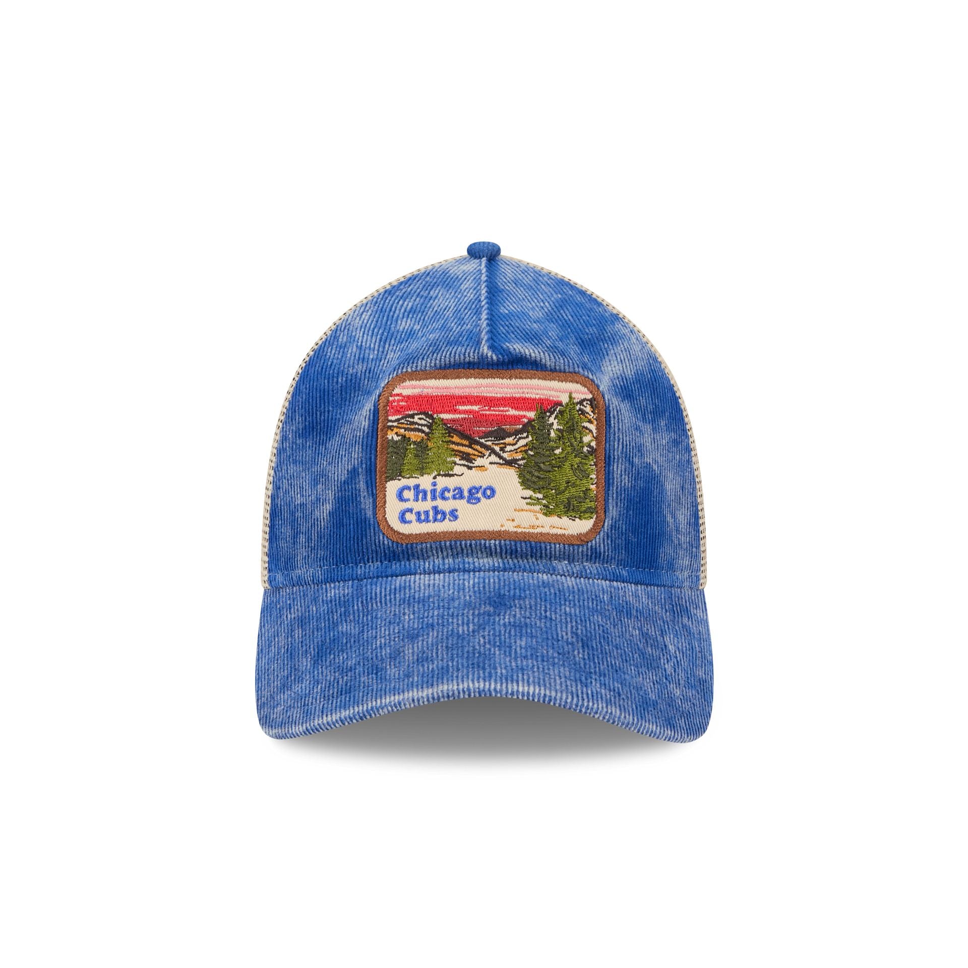 The Chicago Cubs Vintage Landscape 9TWENTY A-Frame Trucker features an embroidered Cubs Vintage Landscape patch at the front panels with a team logo at the right-wear side. Additional details include an adjustable snapback closure at the rear and a gray undervisor.
